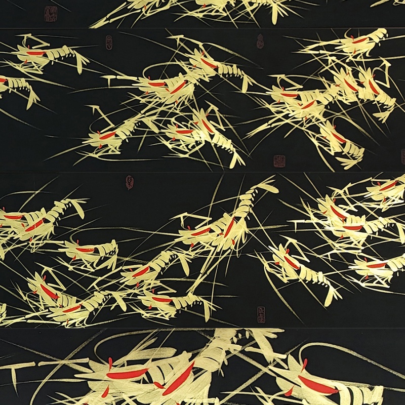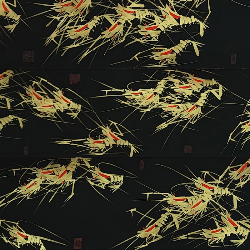 国画:百虾图