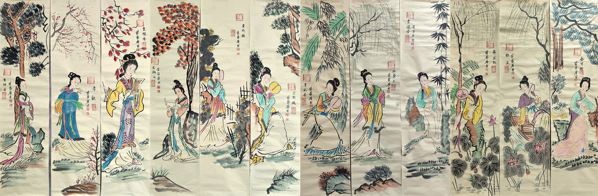 国画:十二条屏