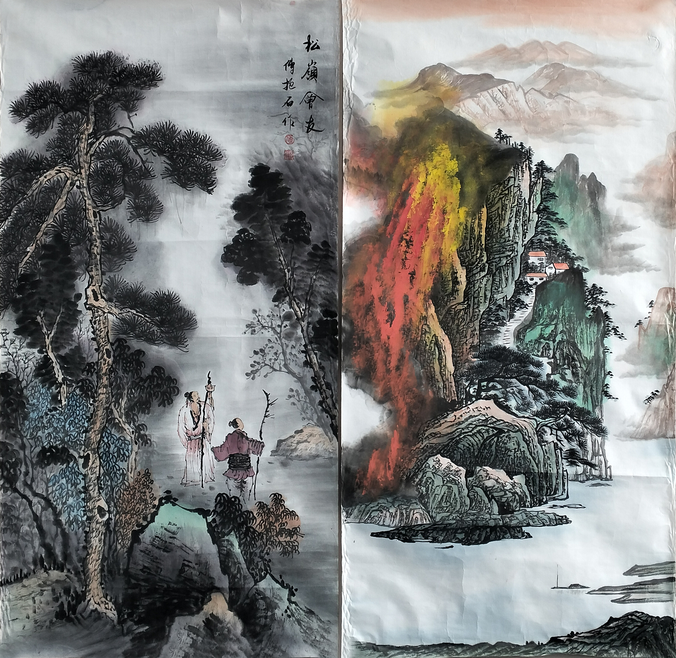 国画:松巅会友、山水