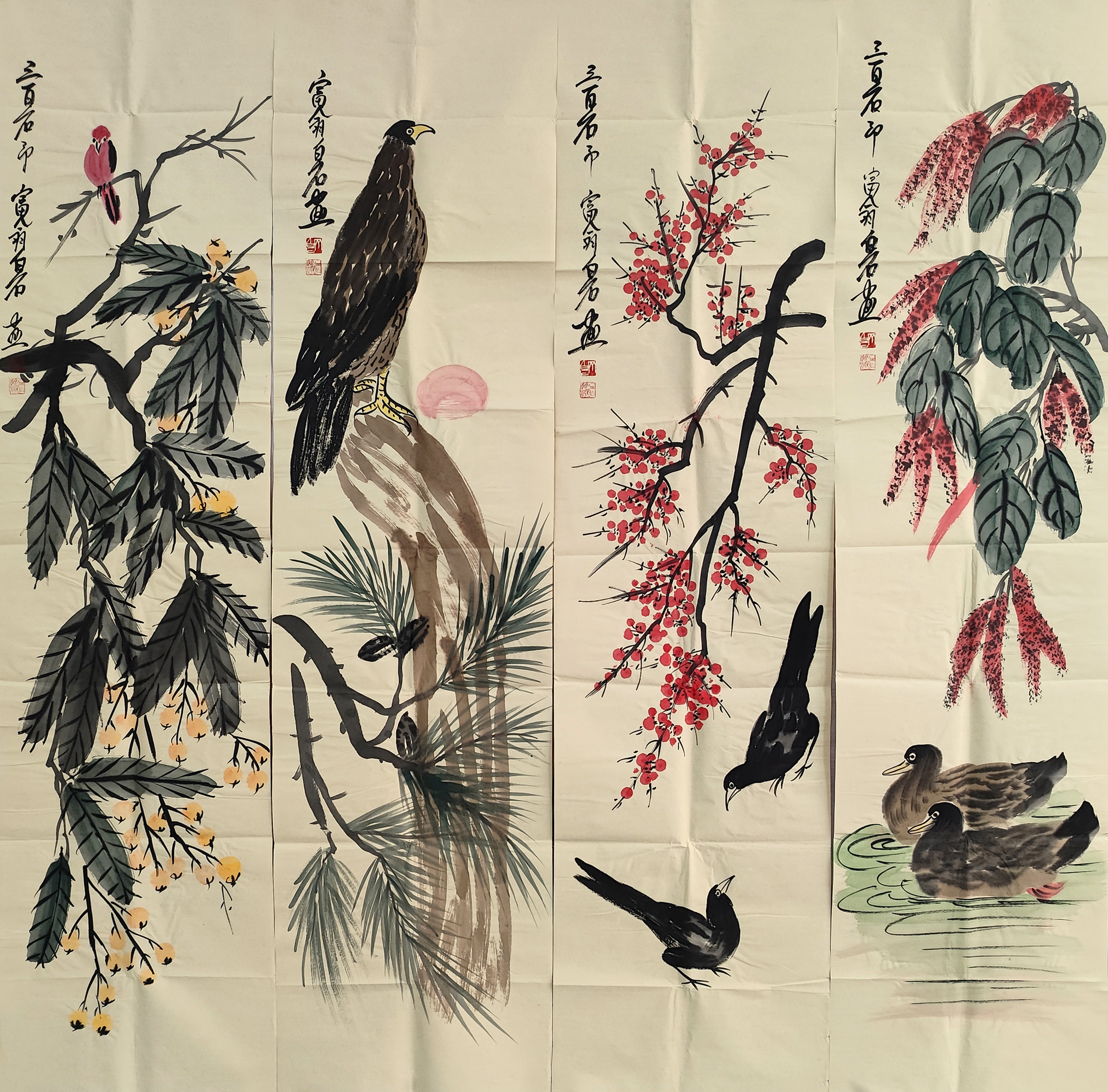 国画:花鸟四条屏