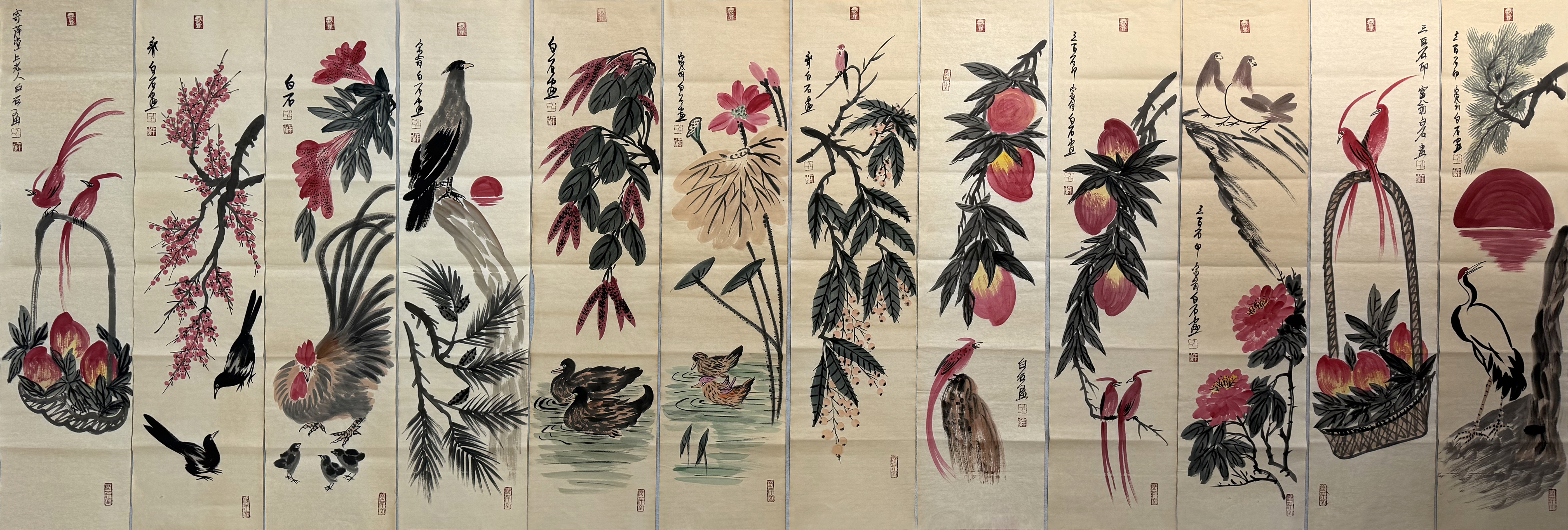 国画:花鸟十二条屏