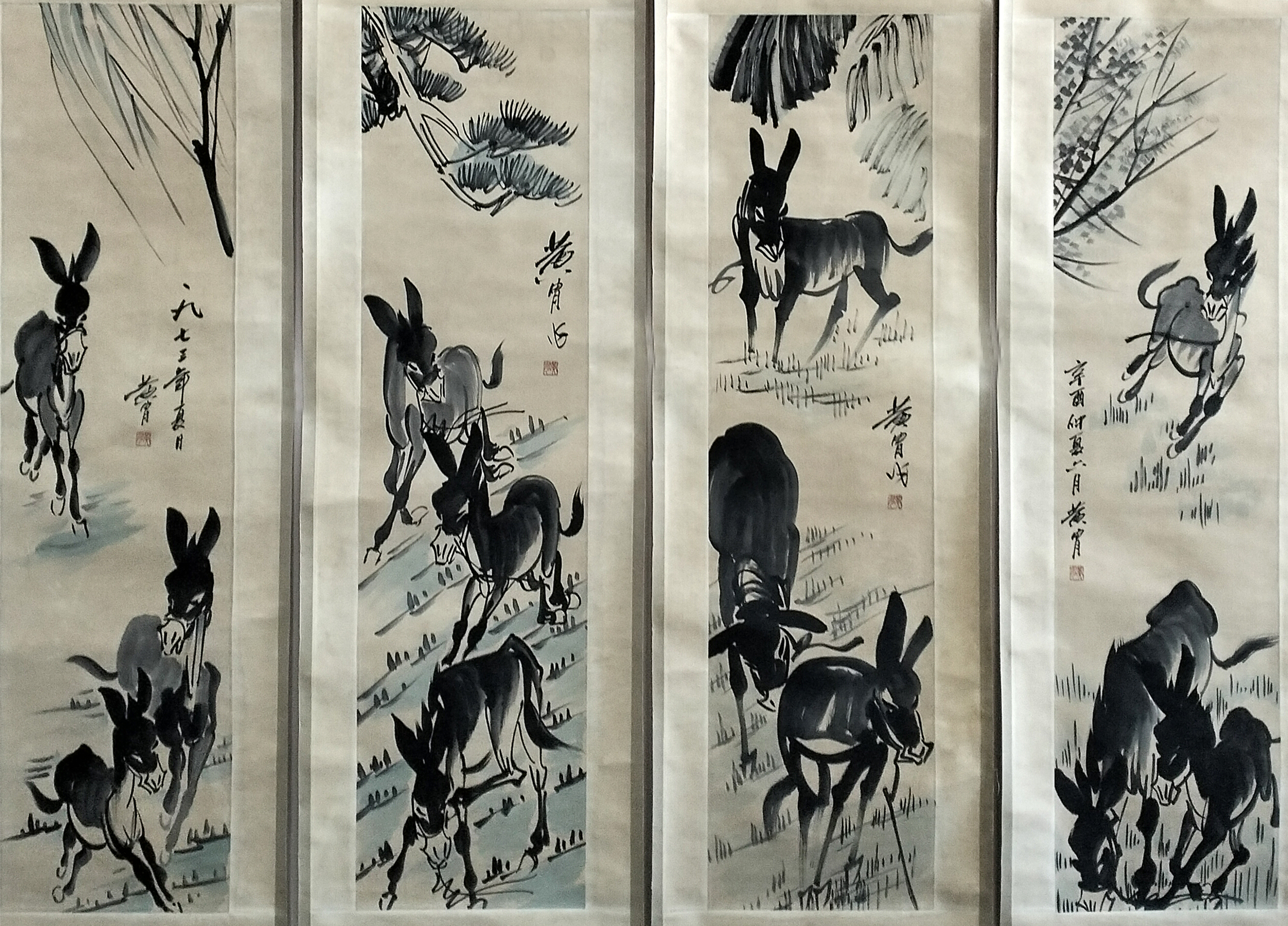 国画:毛驴四条屏
