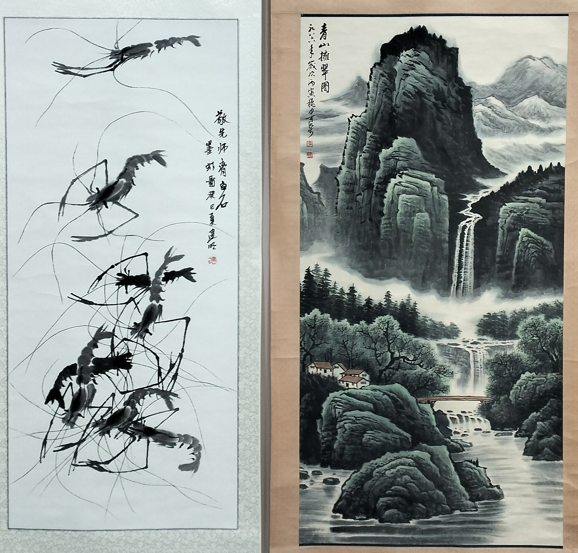 国画:青山拥翠图 水墨虾