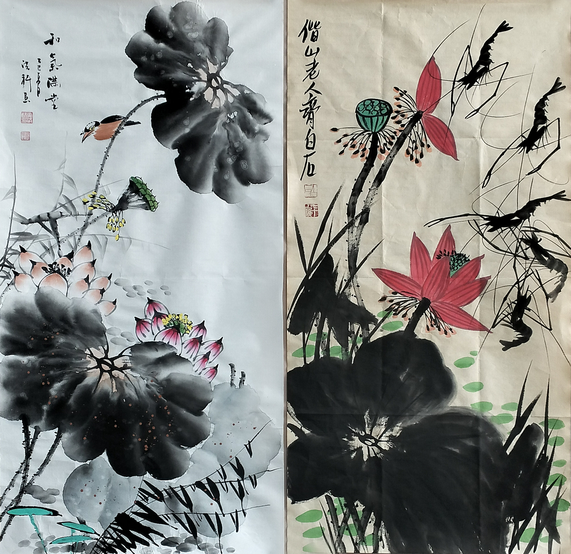 国画:荷花虾、荷花