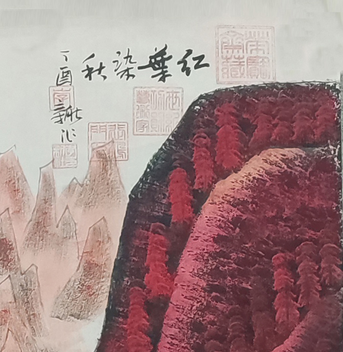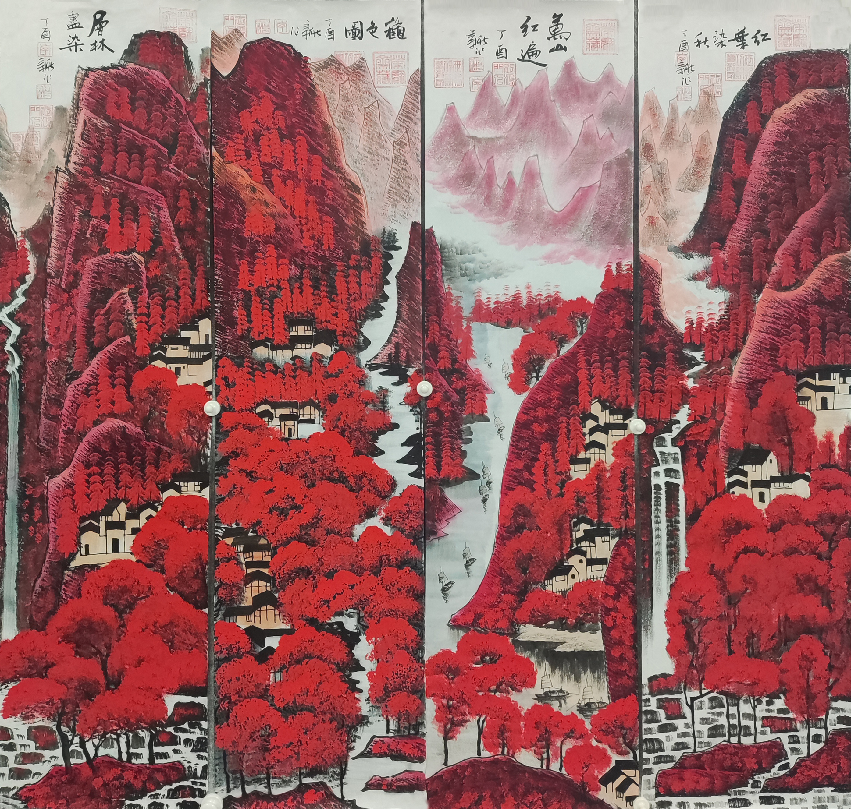 国画:万山红遍四条屏
