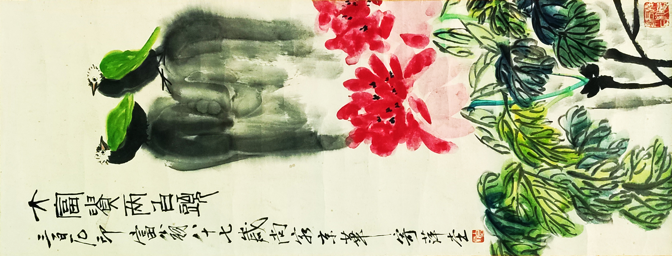 国画:大富贵两白头