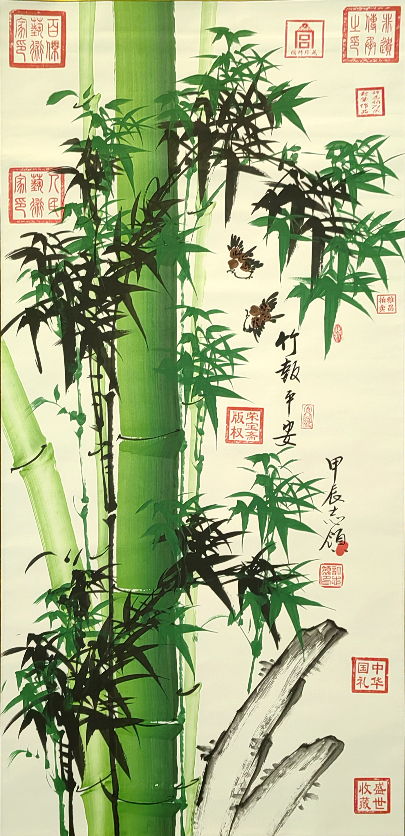 国画:竹报平安