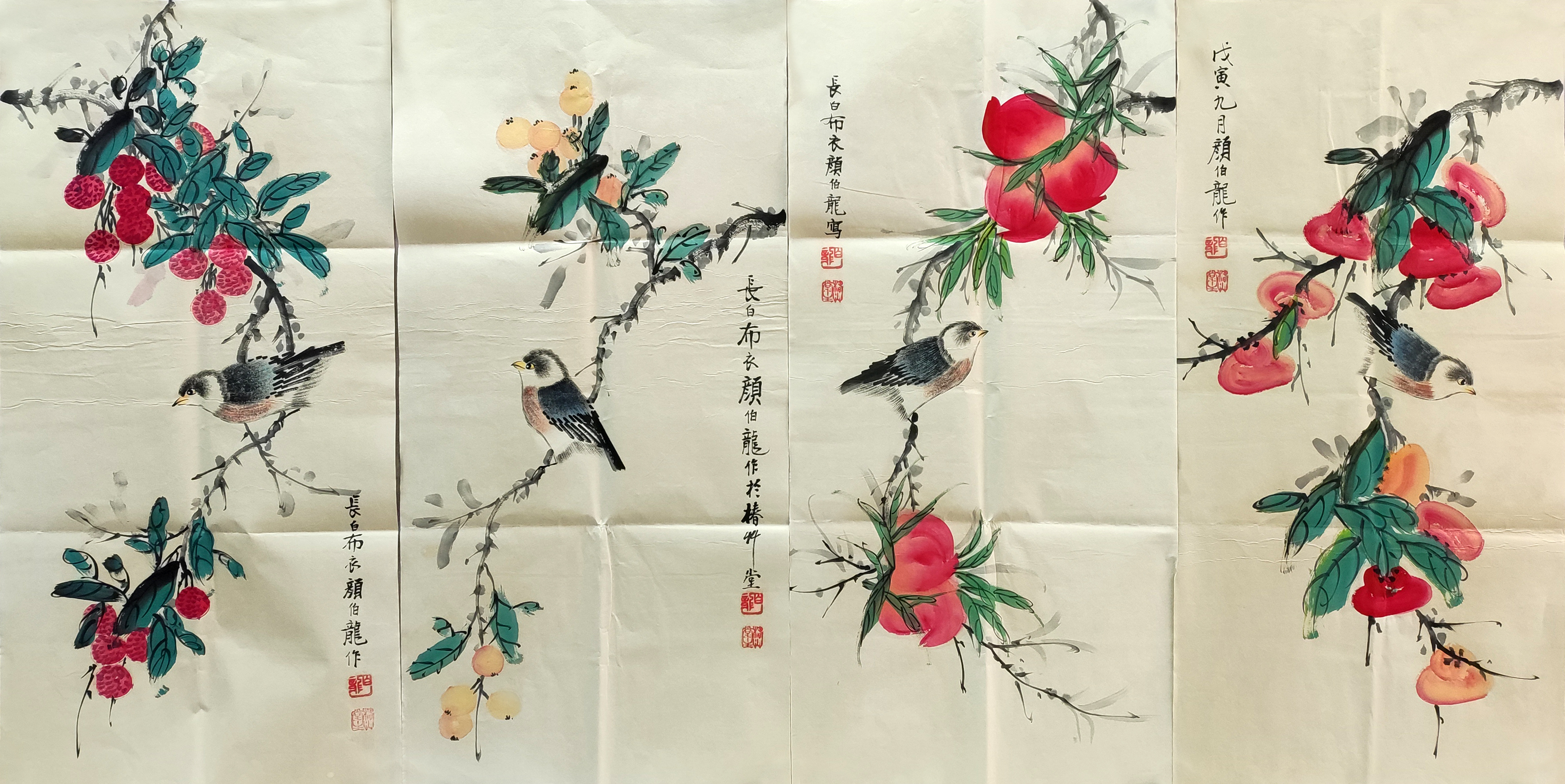 国画:花鸟四条屏