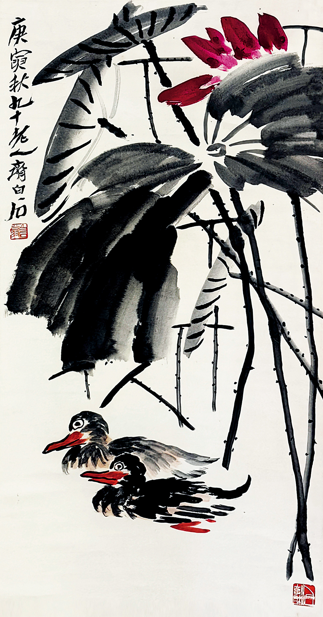 国画:鸳鸯荷花