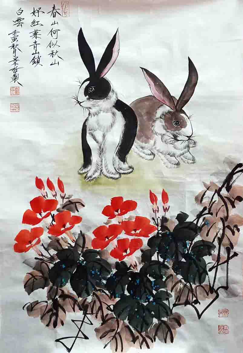 国画:玉兔呈祥