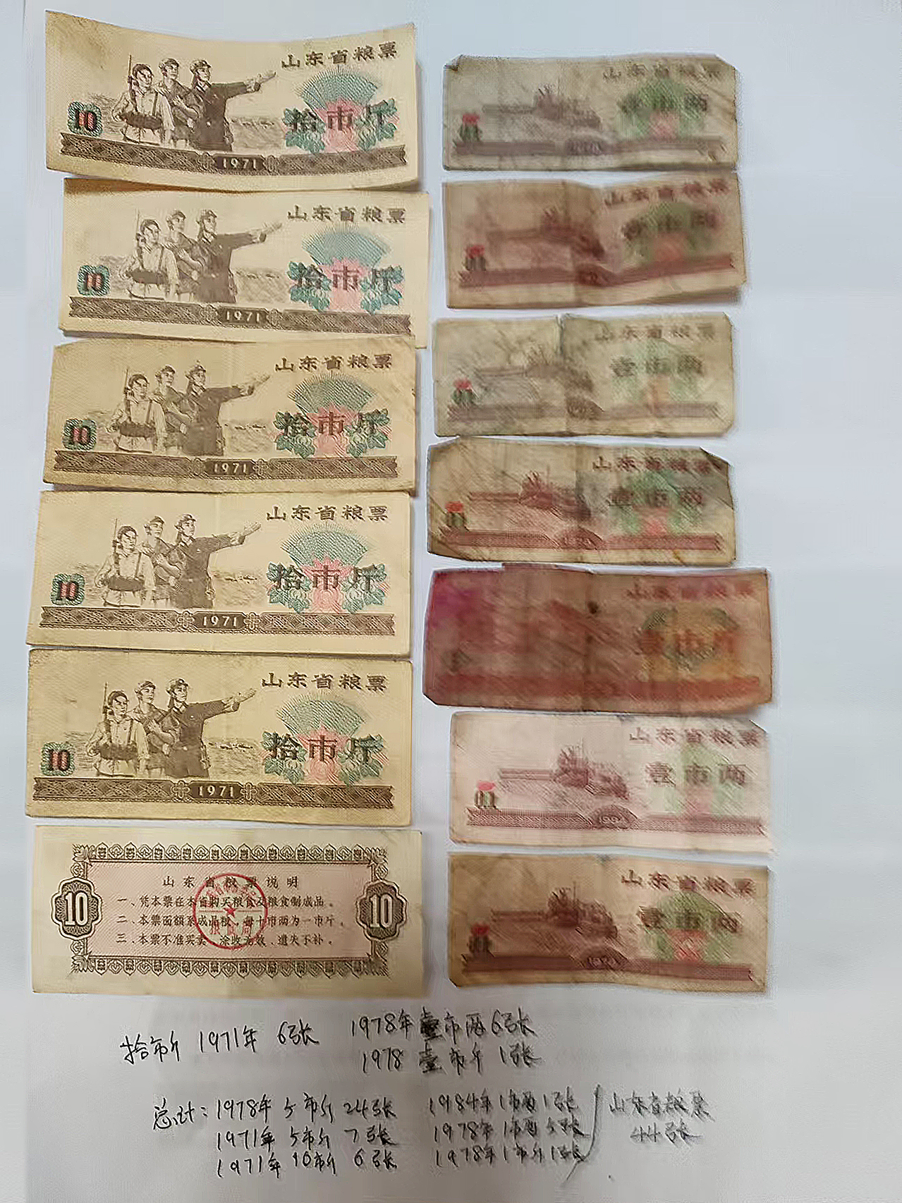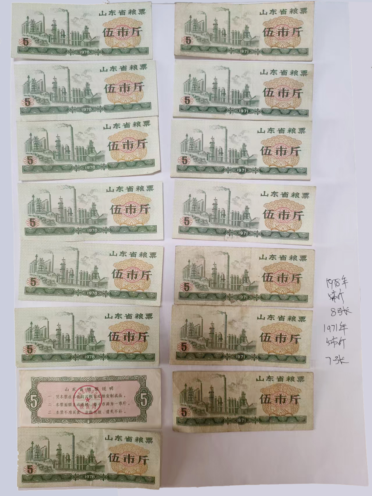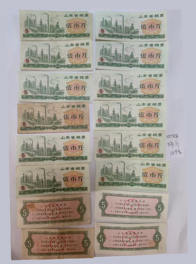 山东粮票44张(971年拾市斤6张,1971年5市斤7张,1978年5市斤24张,