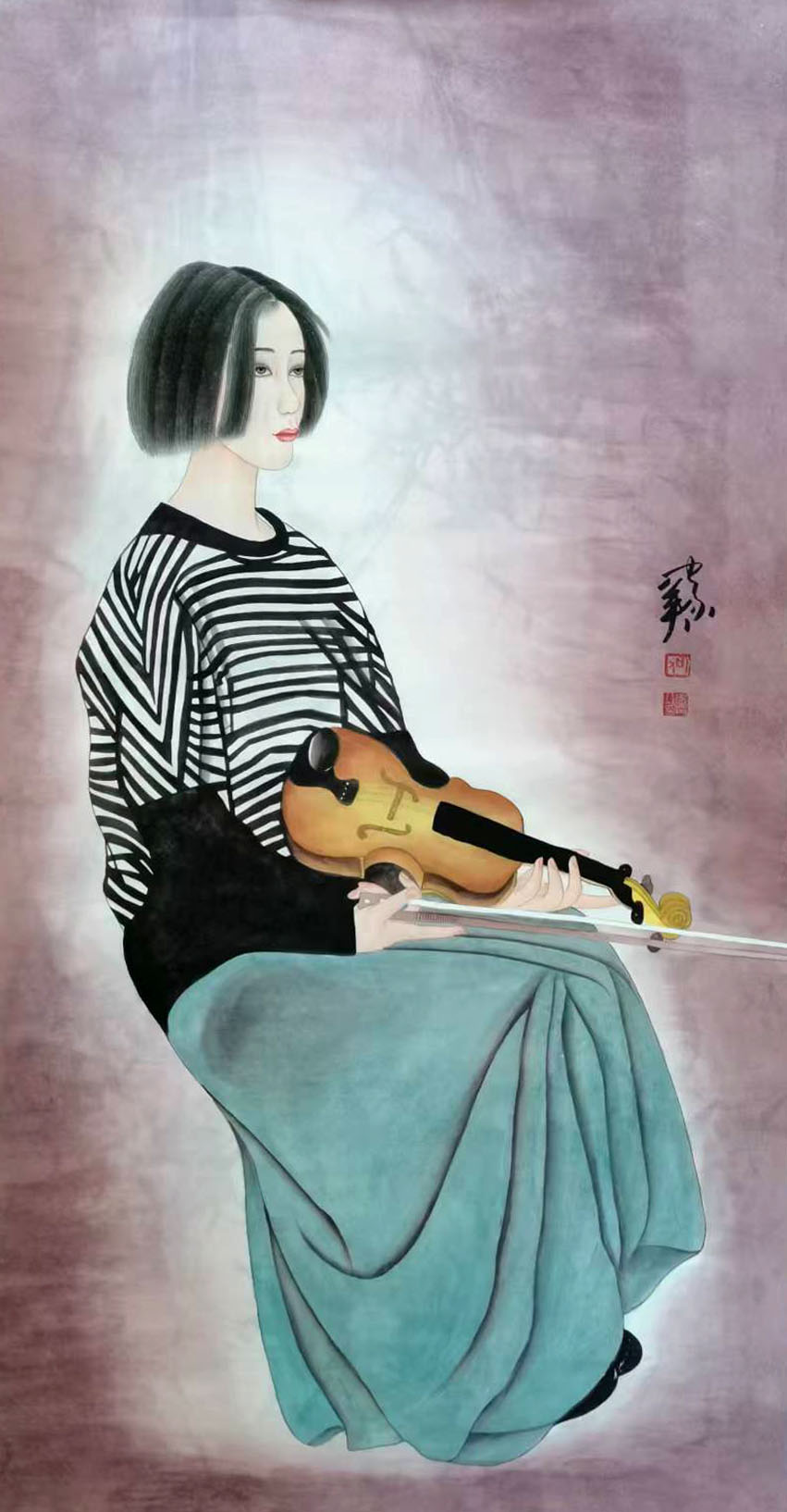 国画:小提琴手