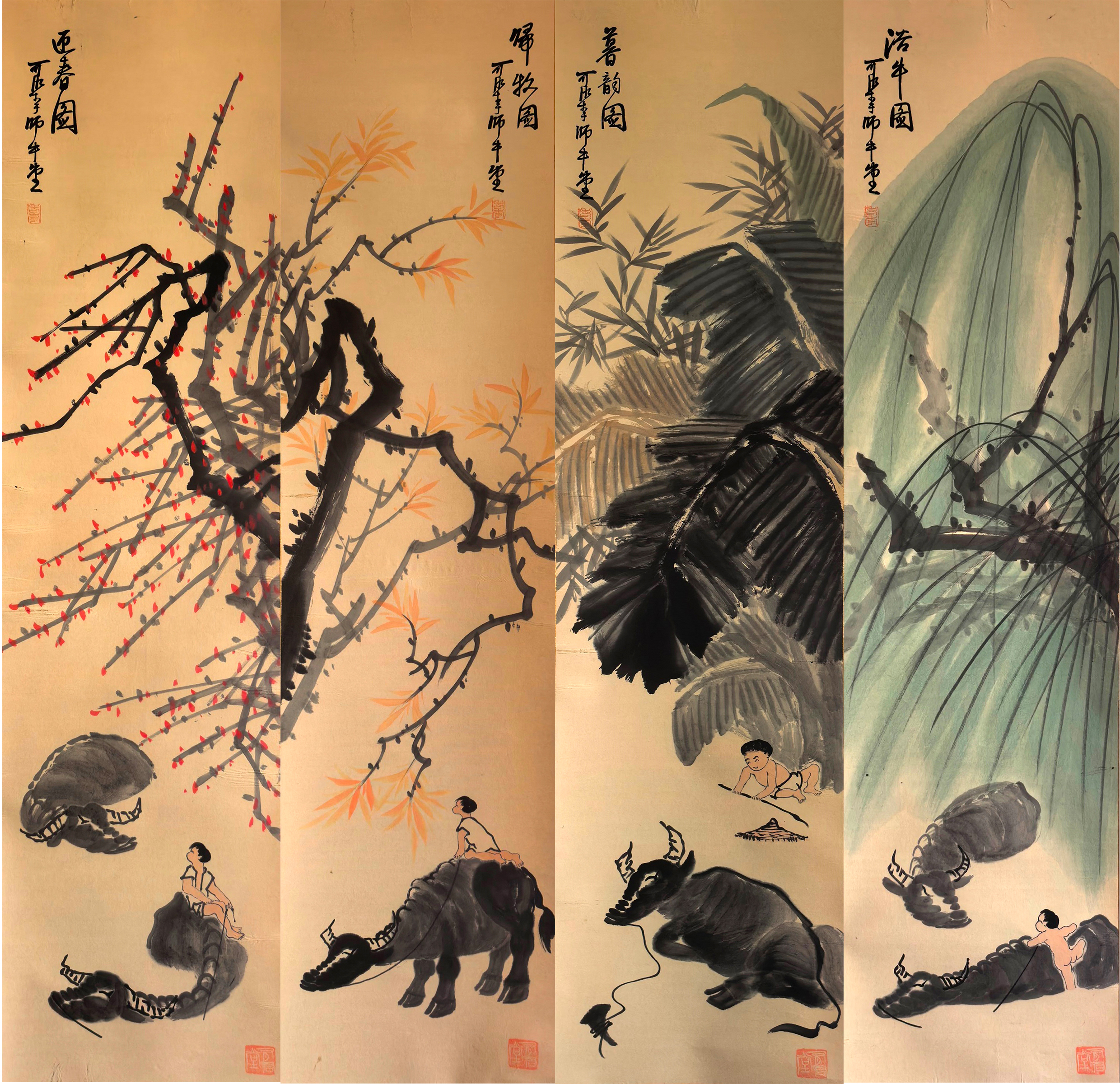 作品名称:《牧牛图四条屏》