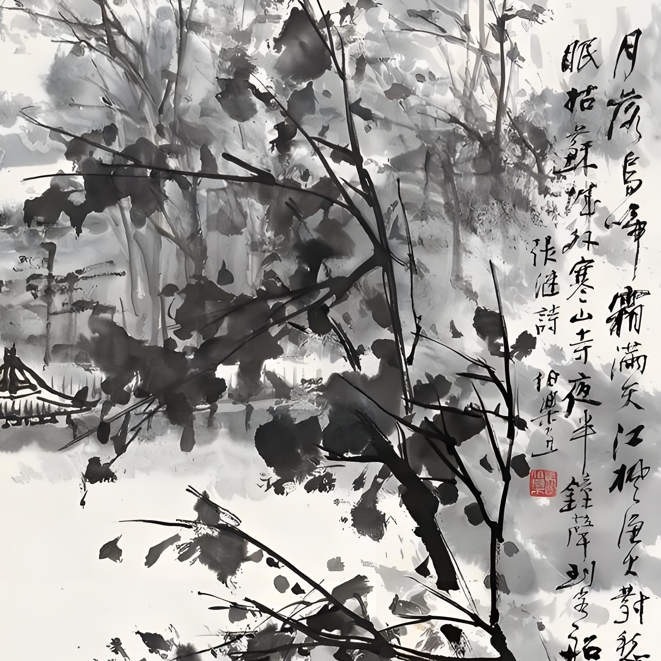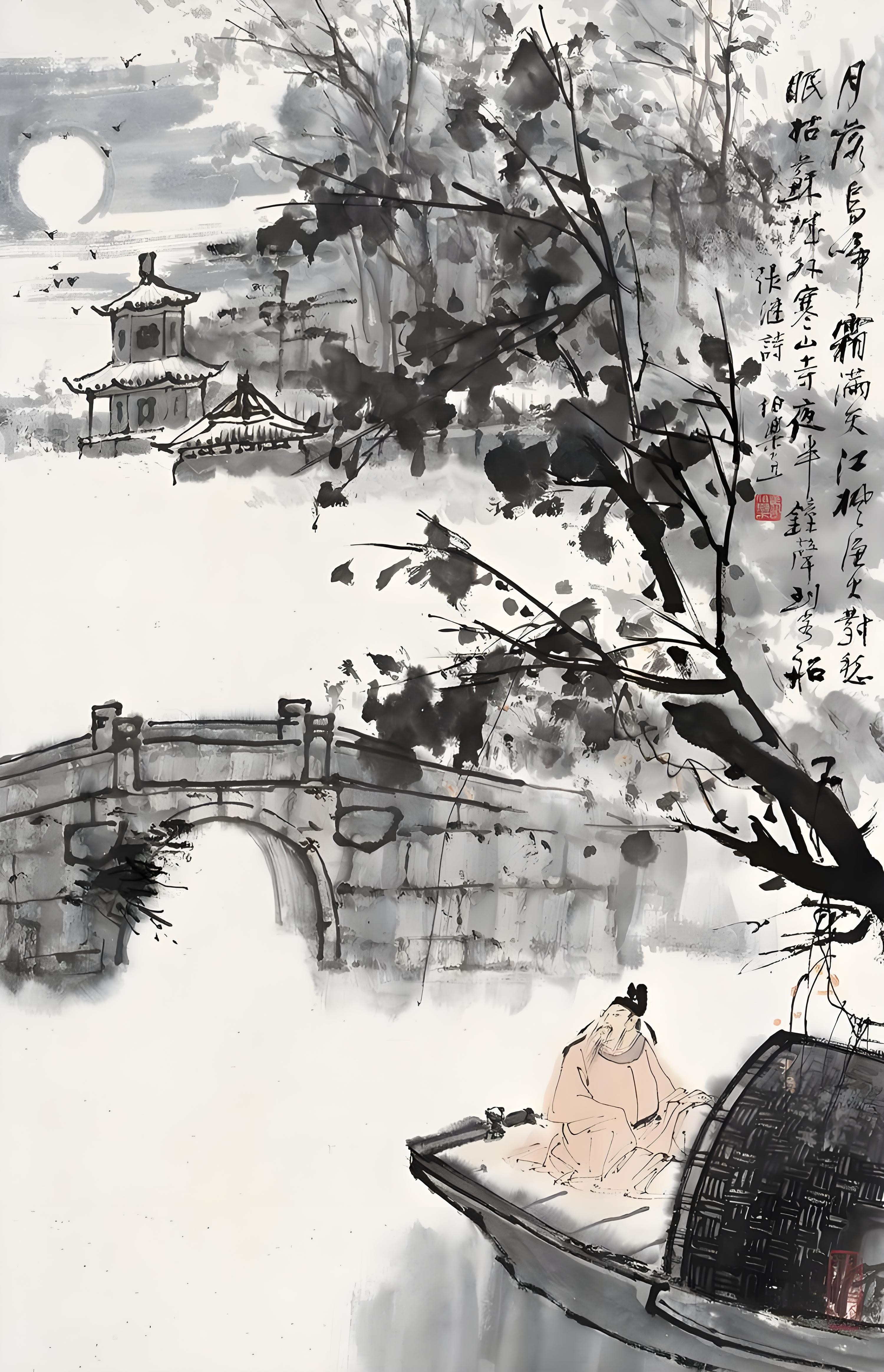 国画:月落乌啼