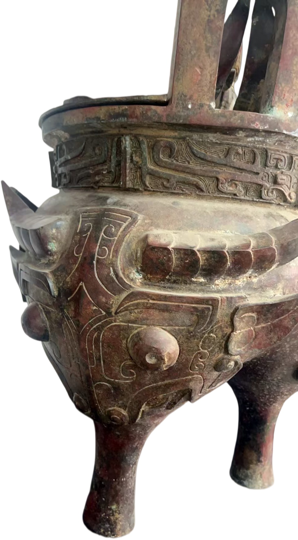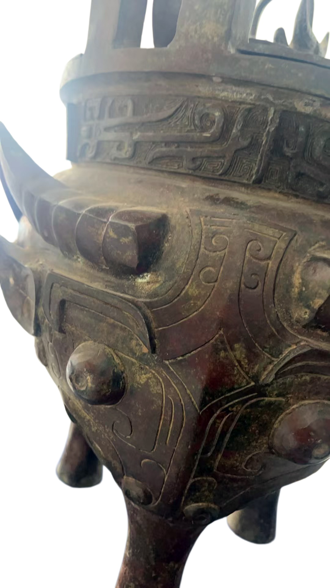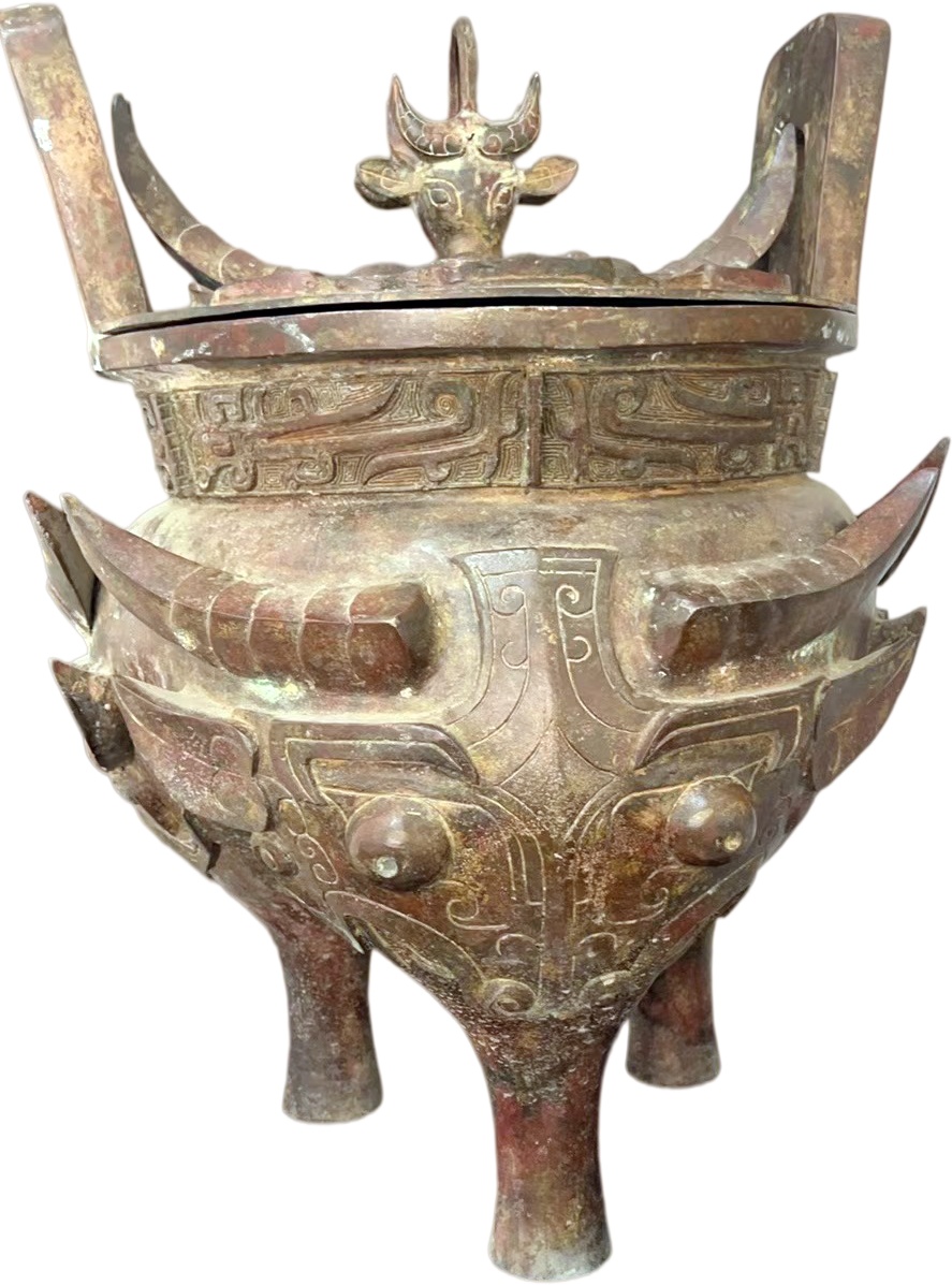 饕餮牛首青铜鼎: