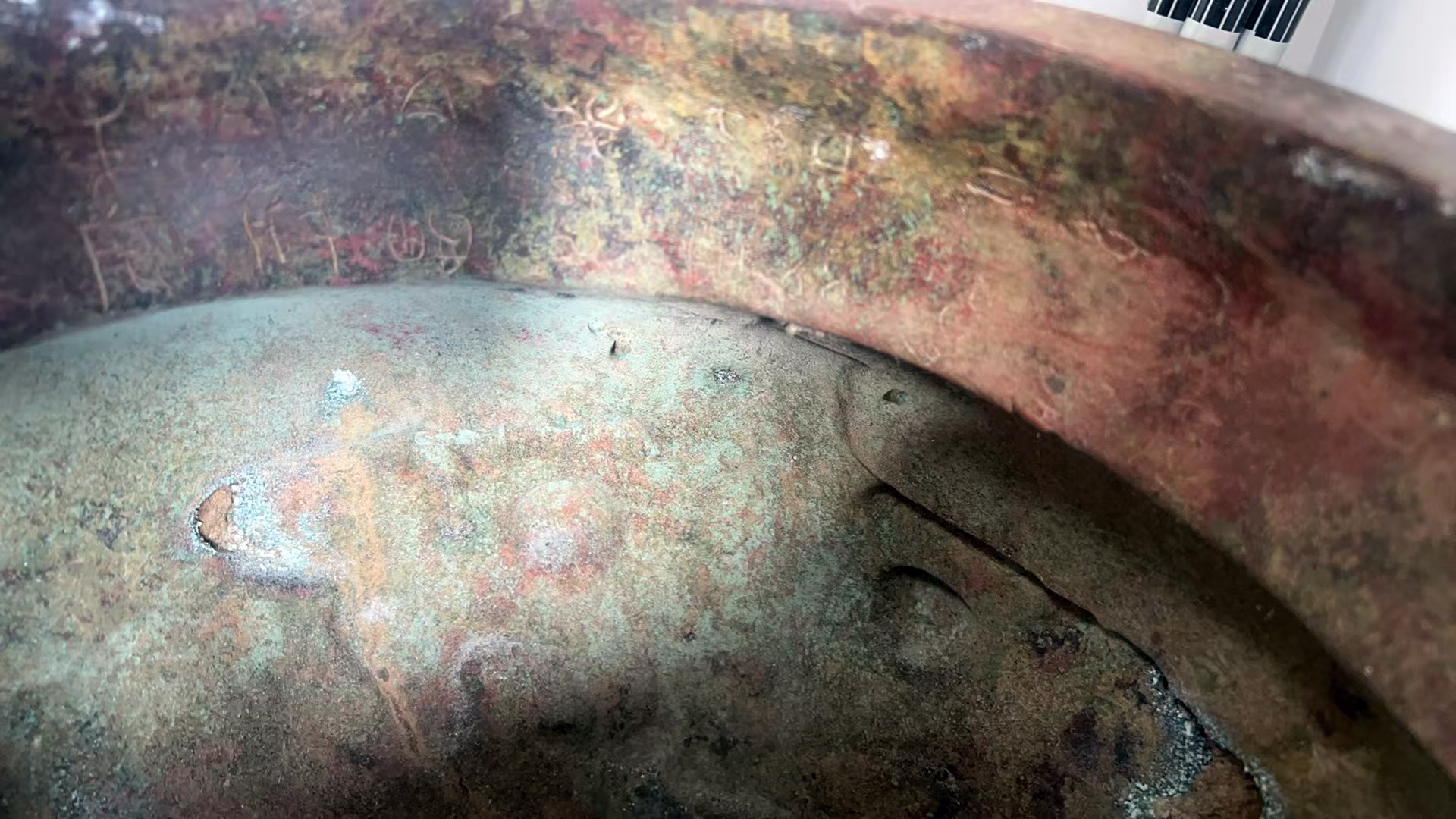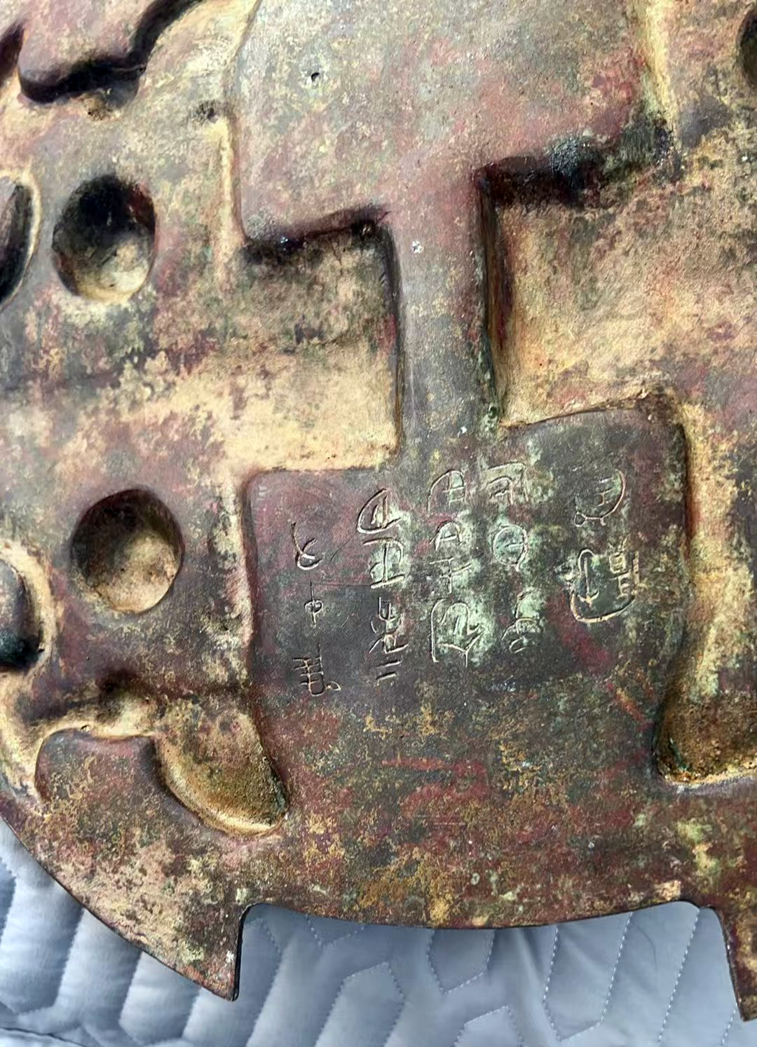 尺寸:高55cm直径40cm胸径52cm盖直径36cm铭文100重量52斤