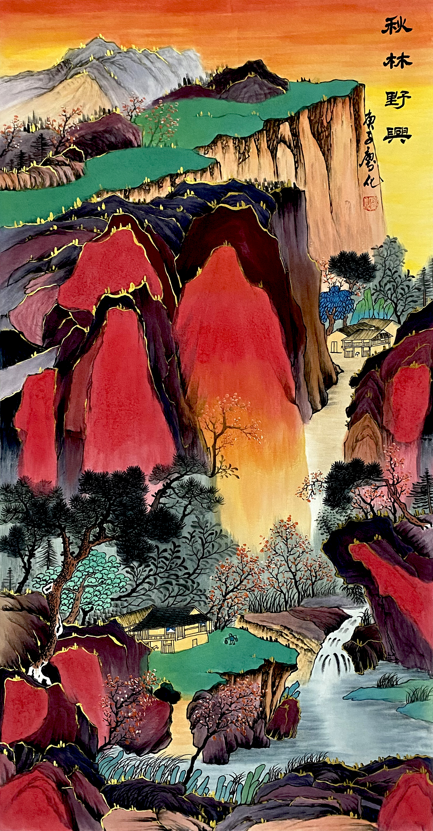 国画:秋林野兴