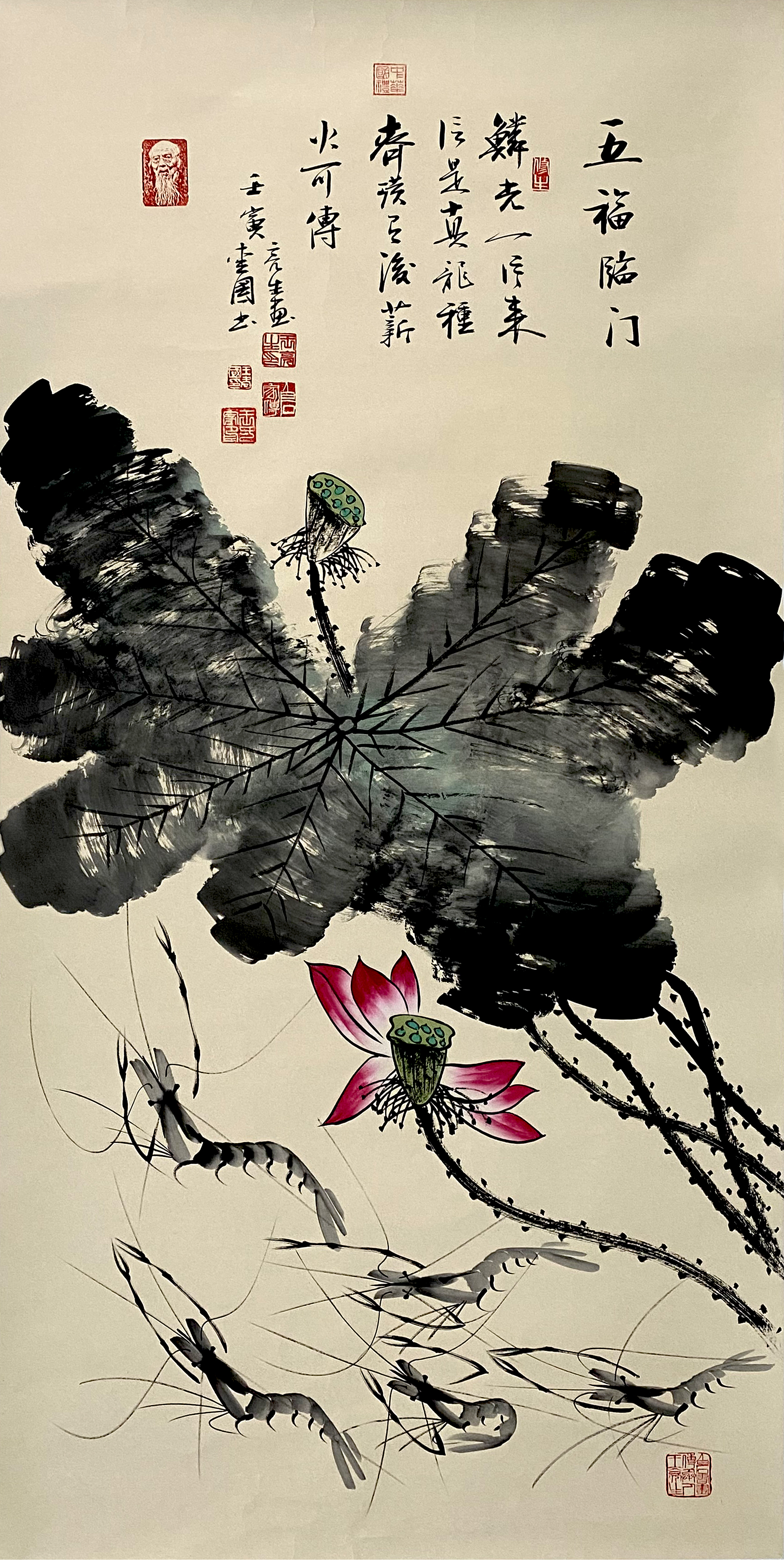 国画:五福临门