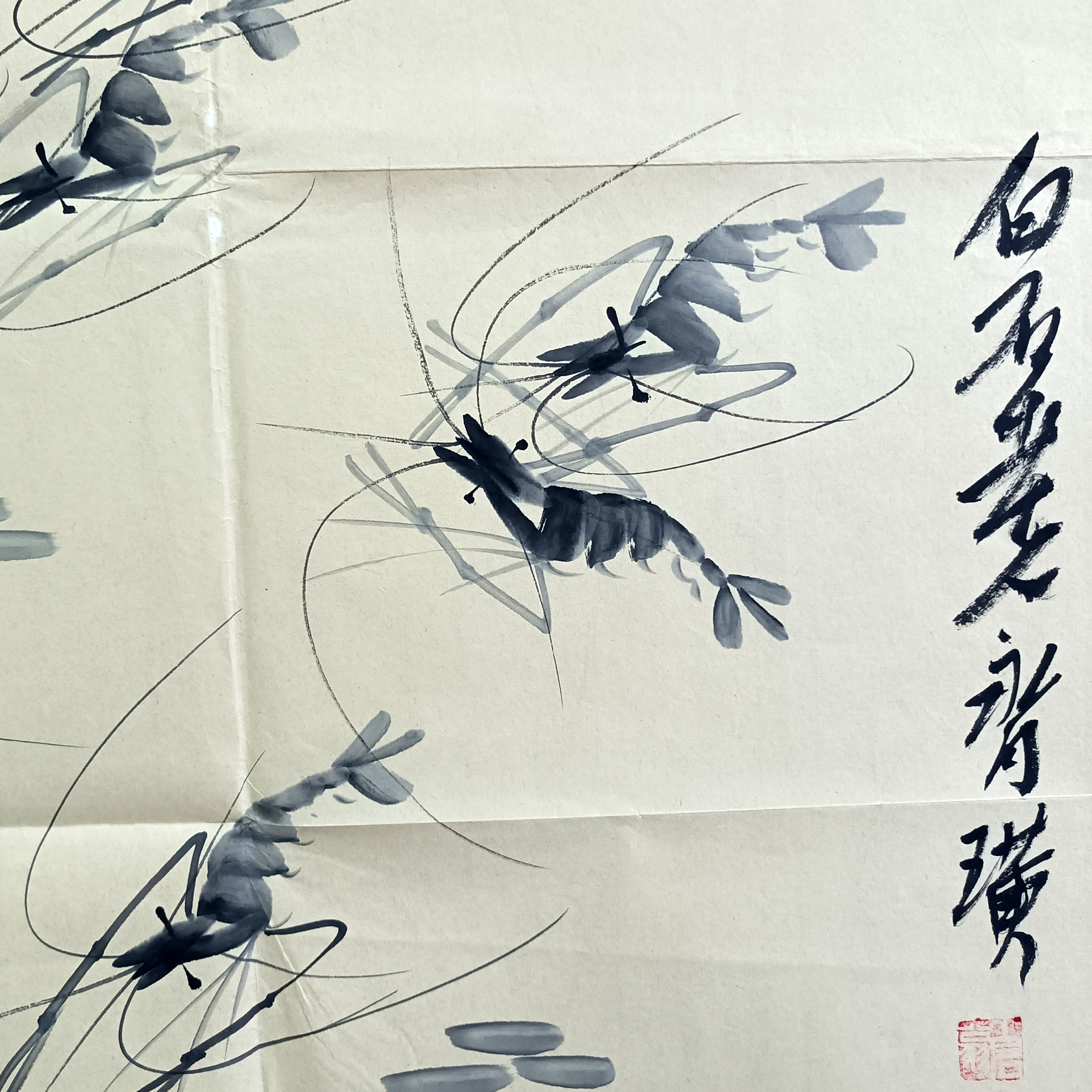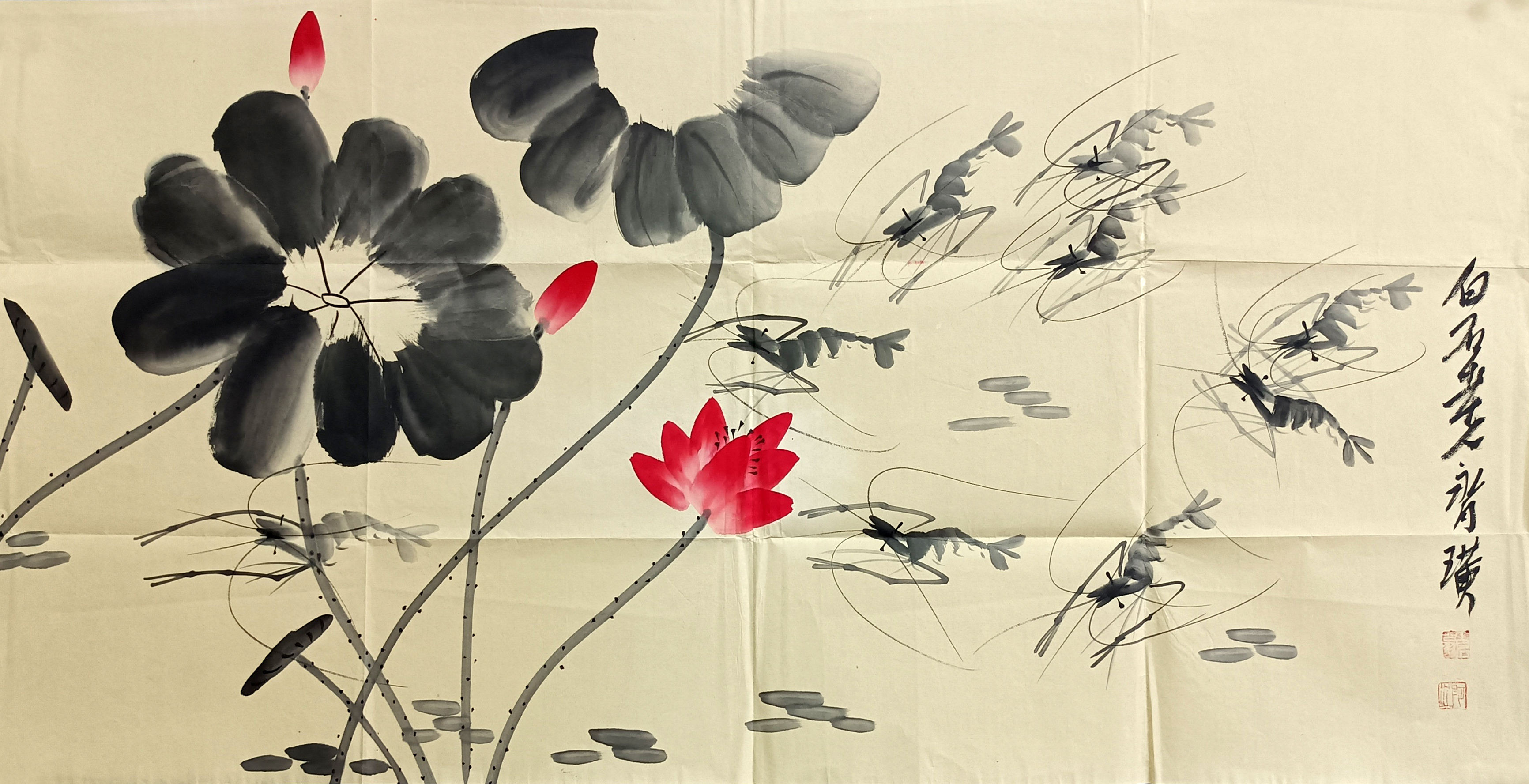 国画:荷虾图