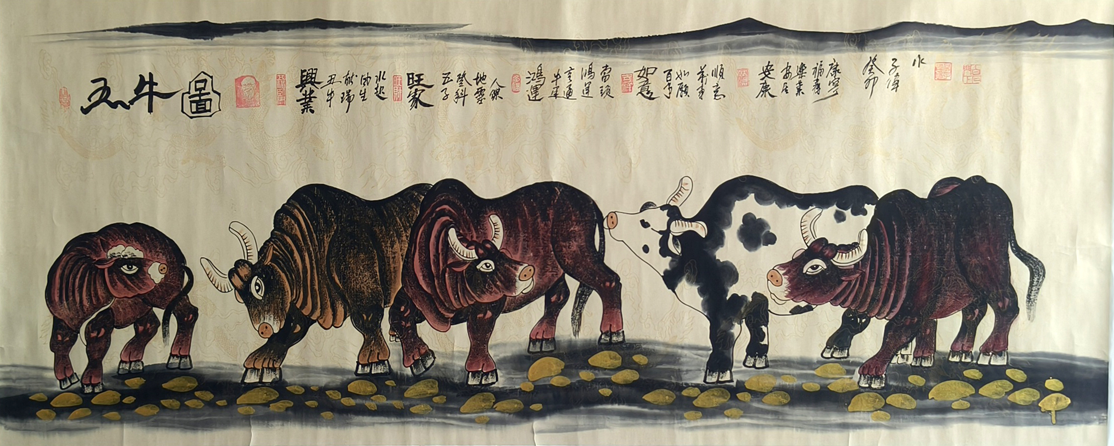 国画:五牛图