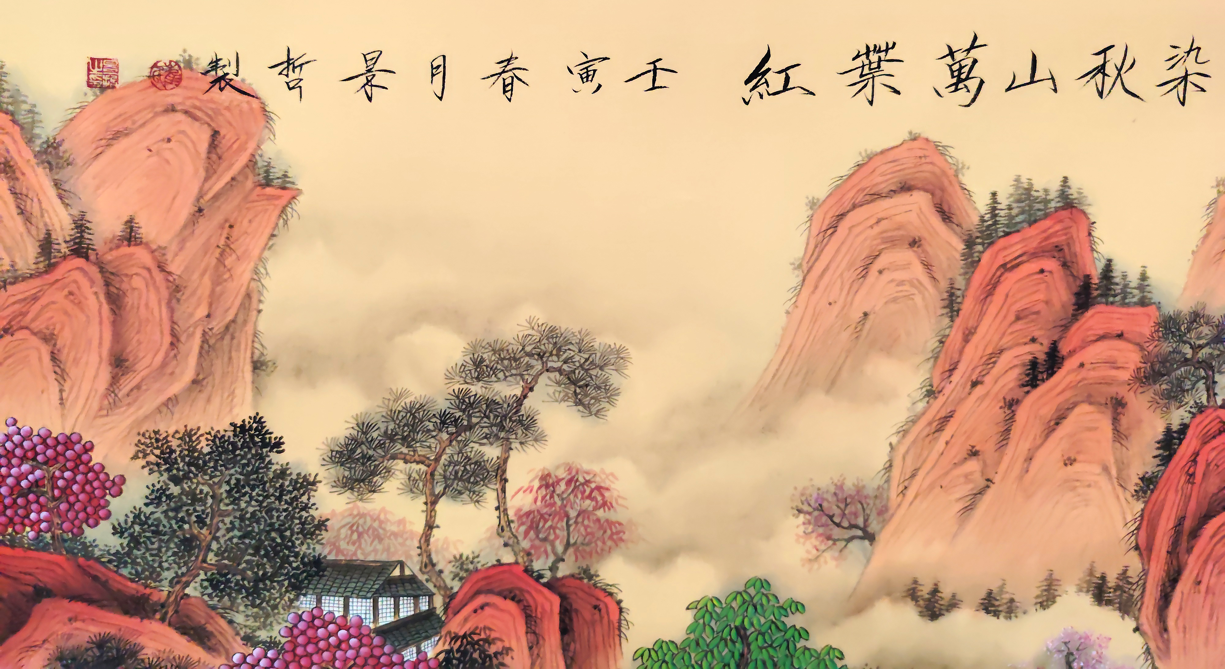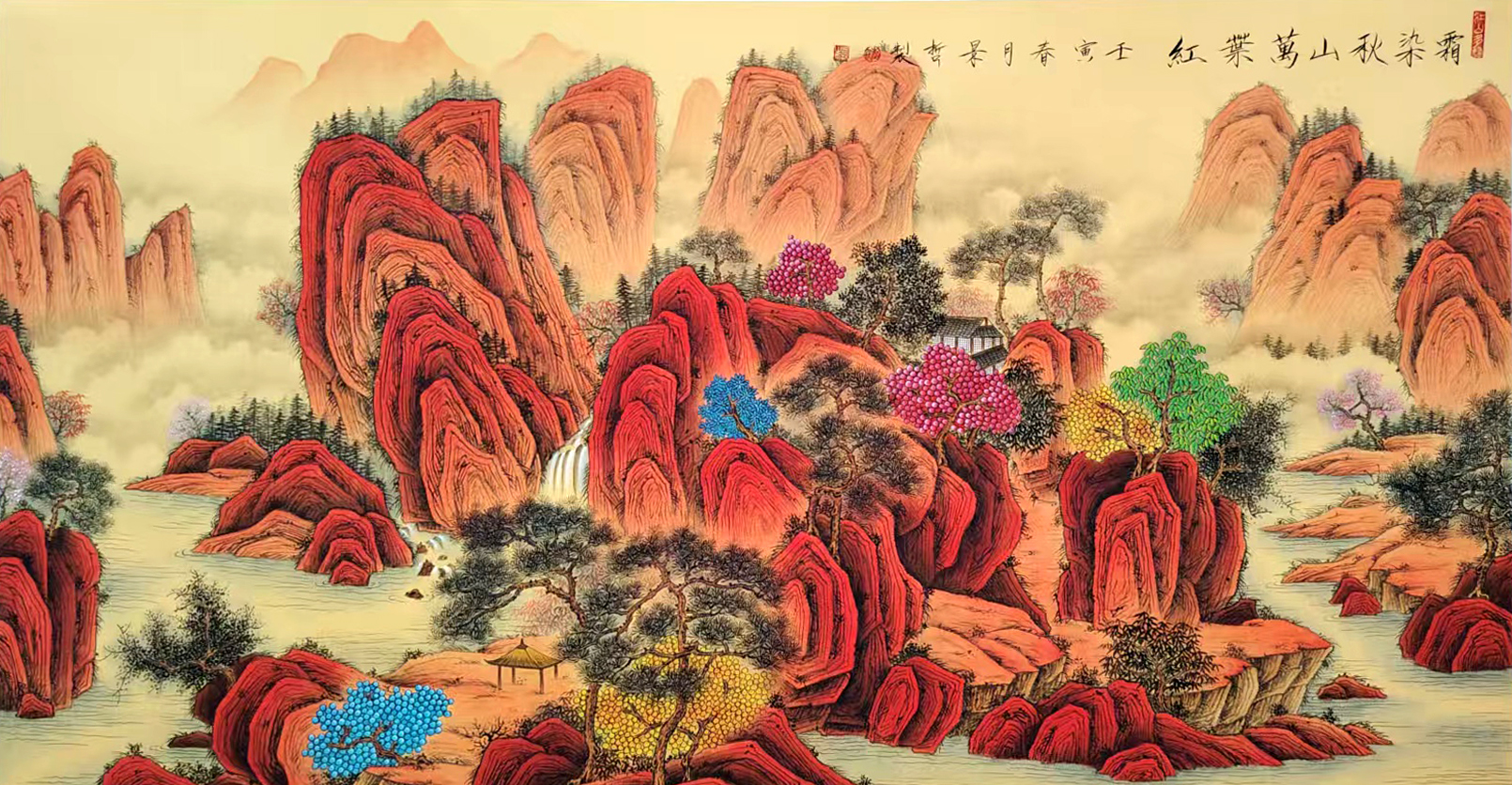 国画:霜染秋山万叶红