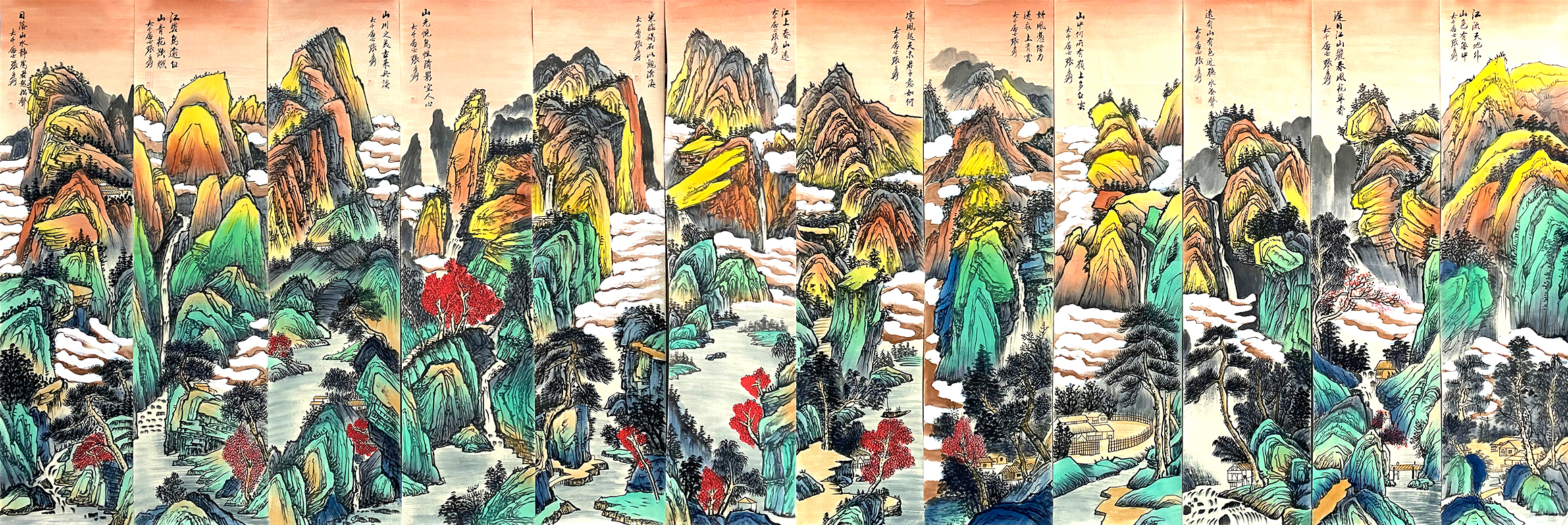 国画:山水十二条屏