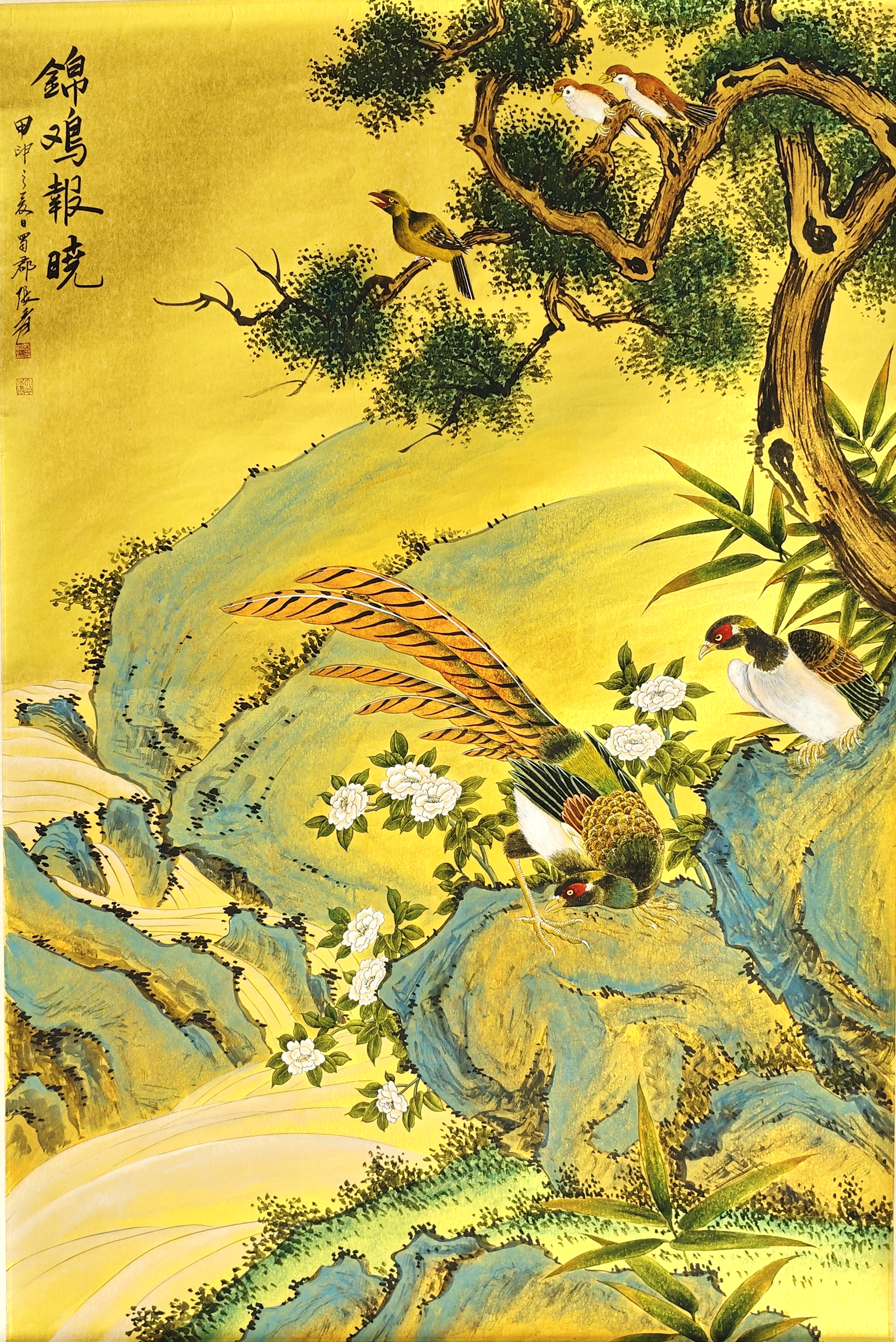 国画:锦鸡报晓