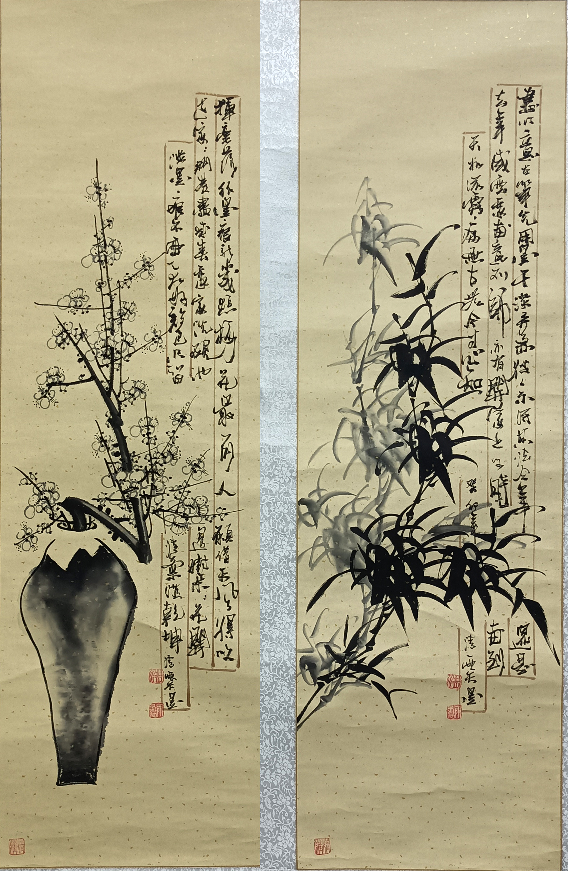 国画:梅竹两条屏