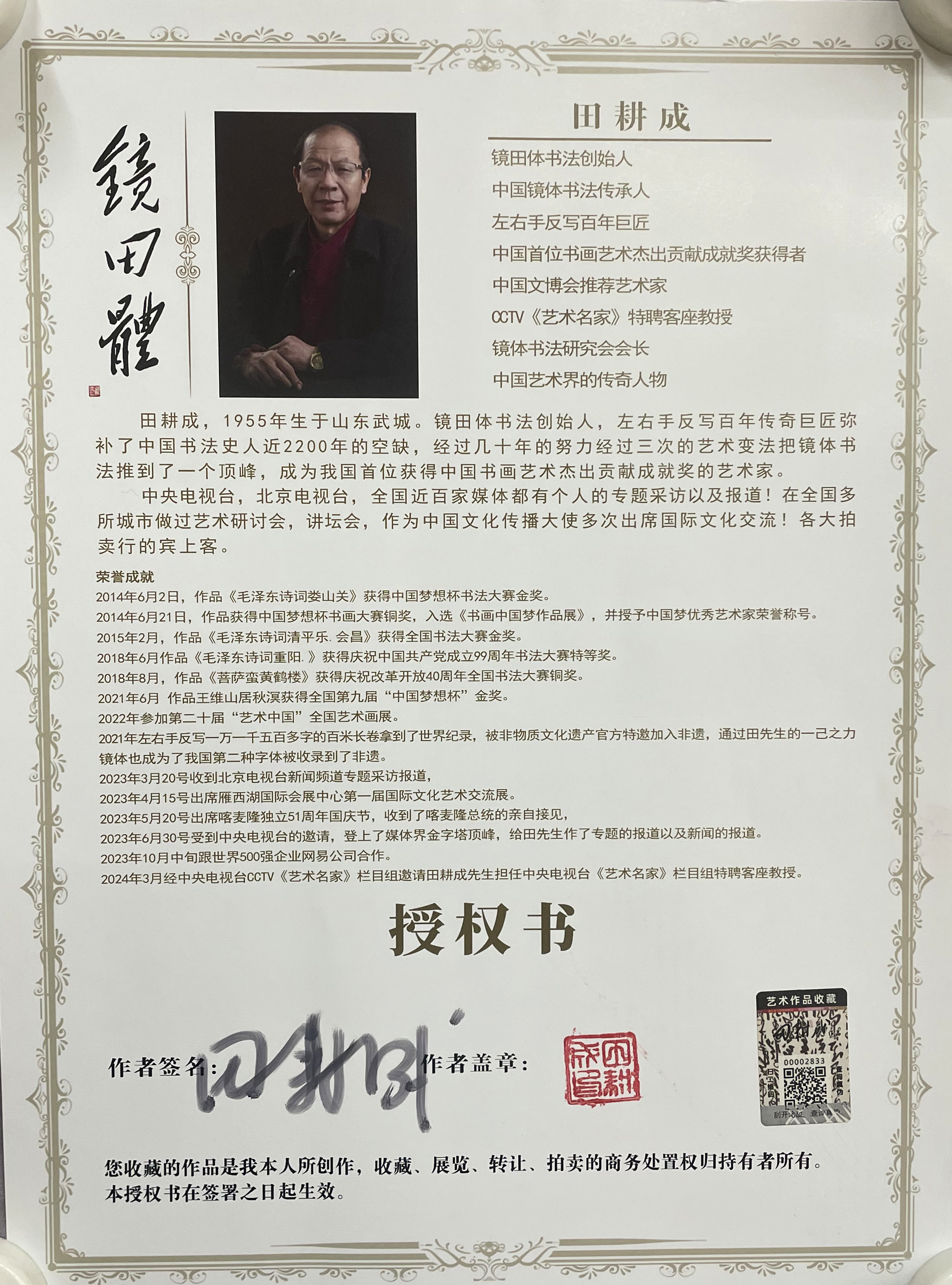 作者:田耕成(款)