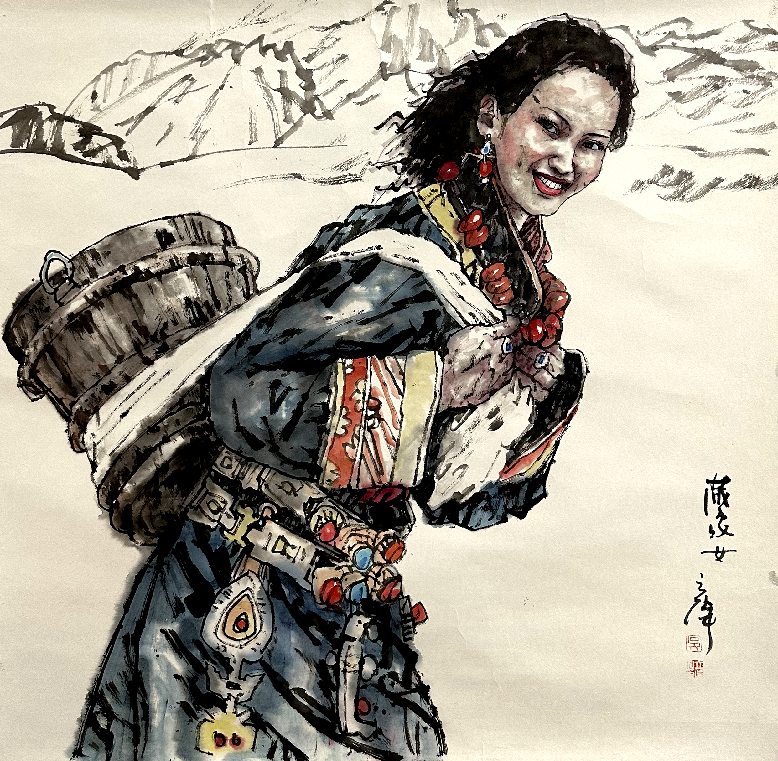 国画:藏家女