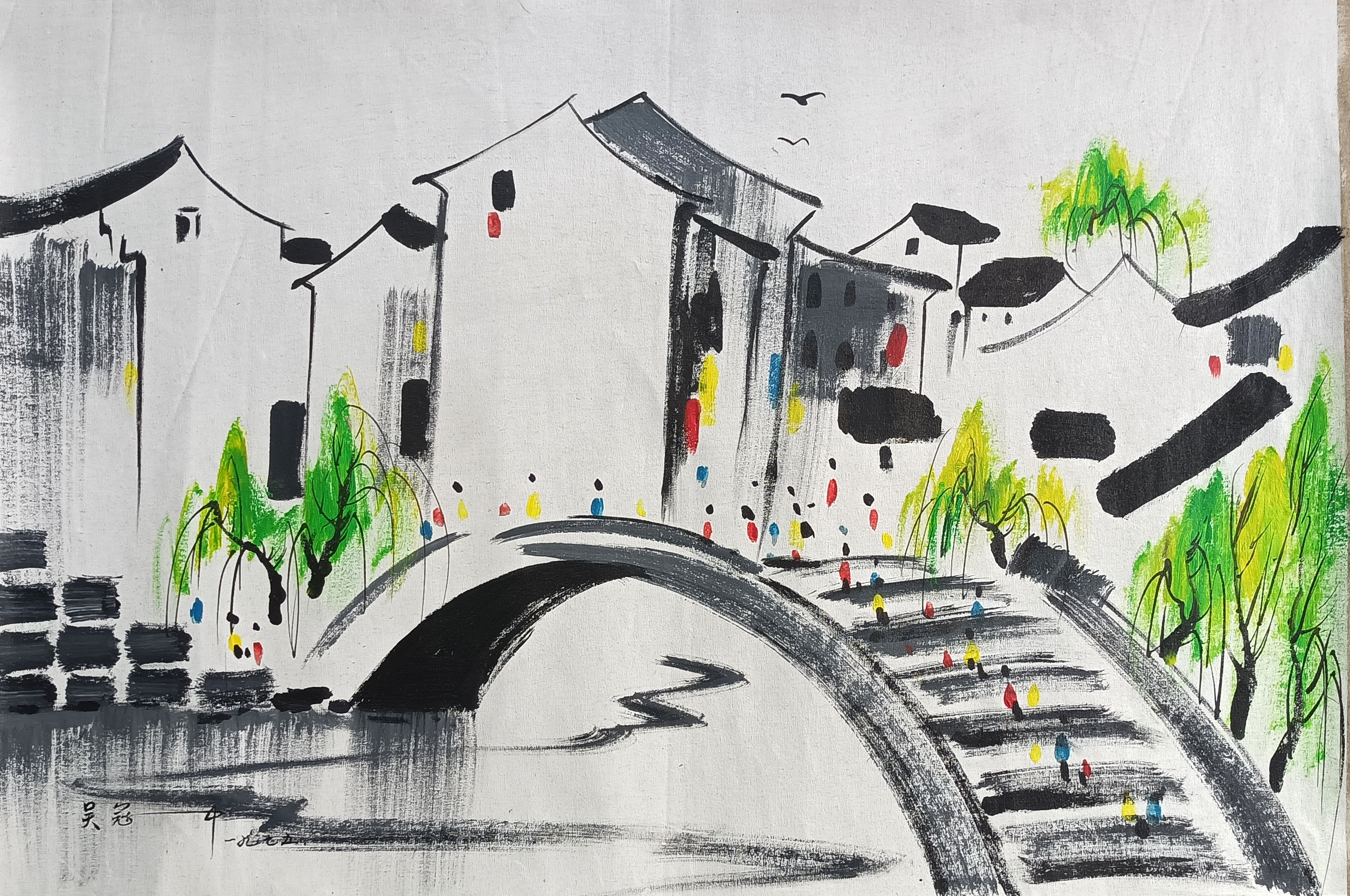 国画:江南水乡油画