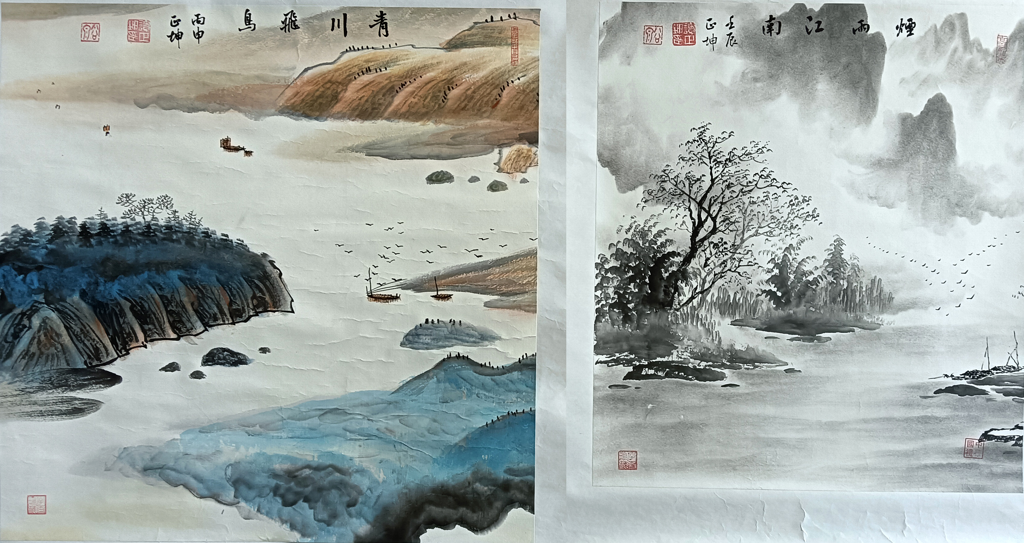 国画:烟雨江南、青川飞鸟