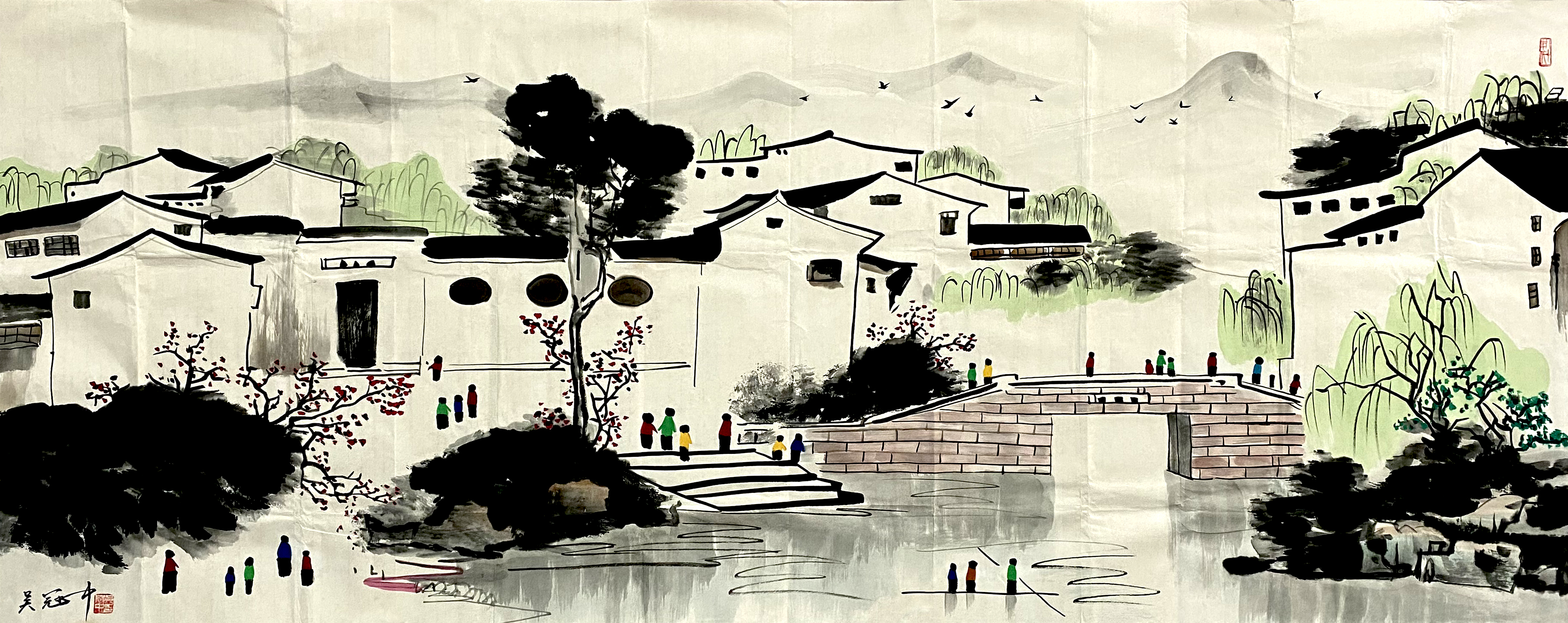 国画:江南水乡横幅