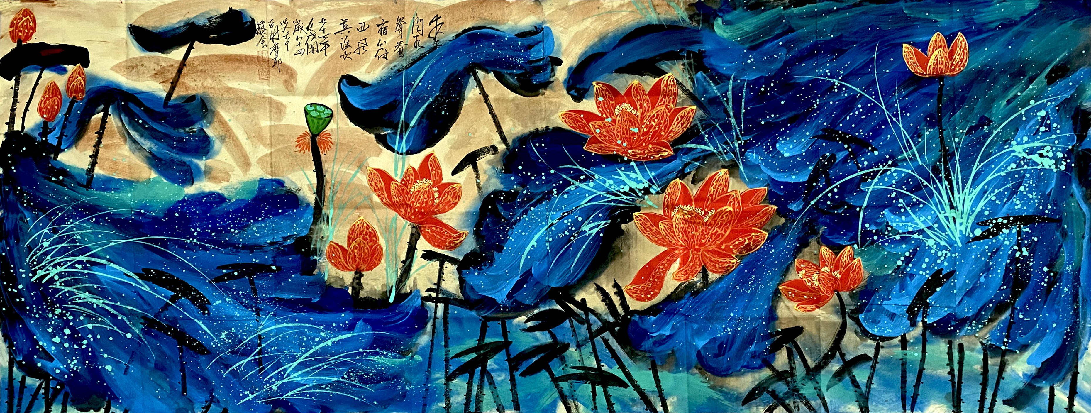 国画:泼彩荷花
