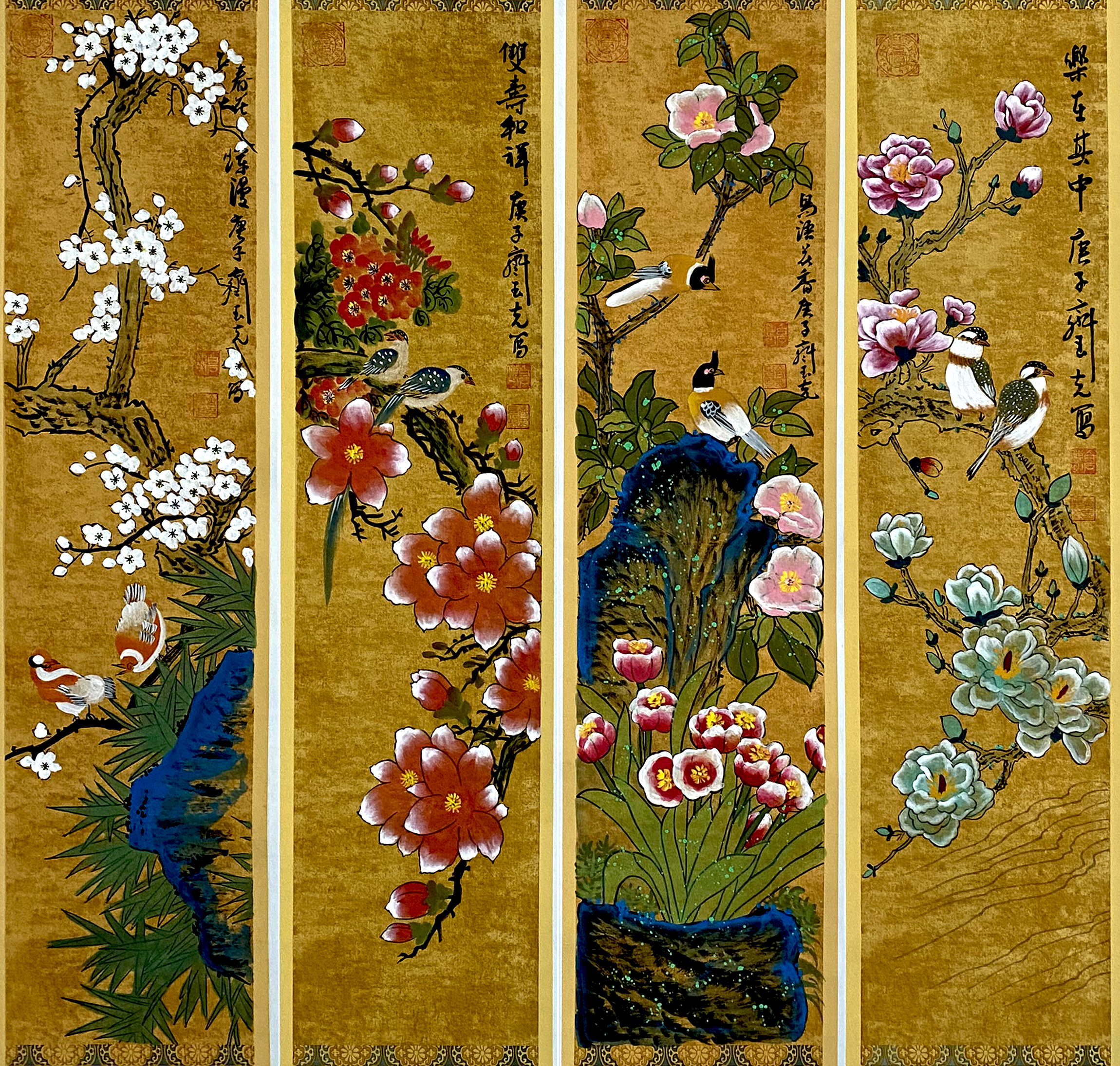国画:花鸟四条屏
