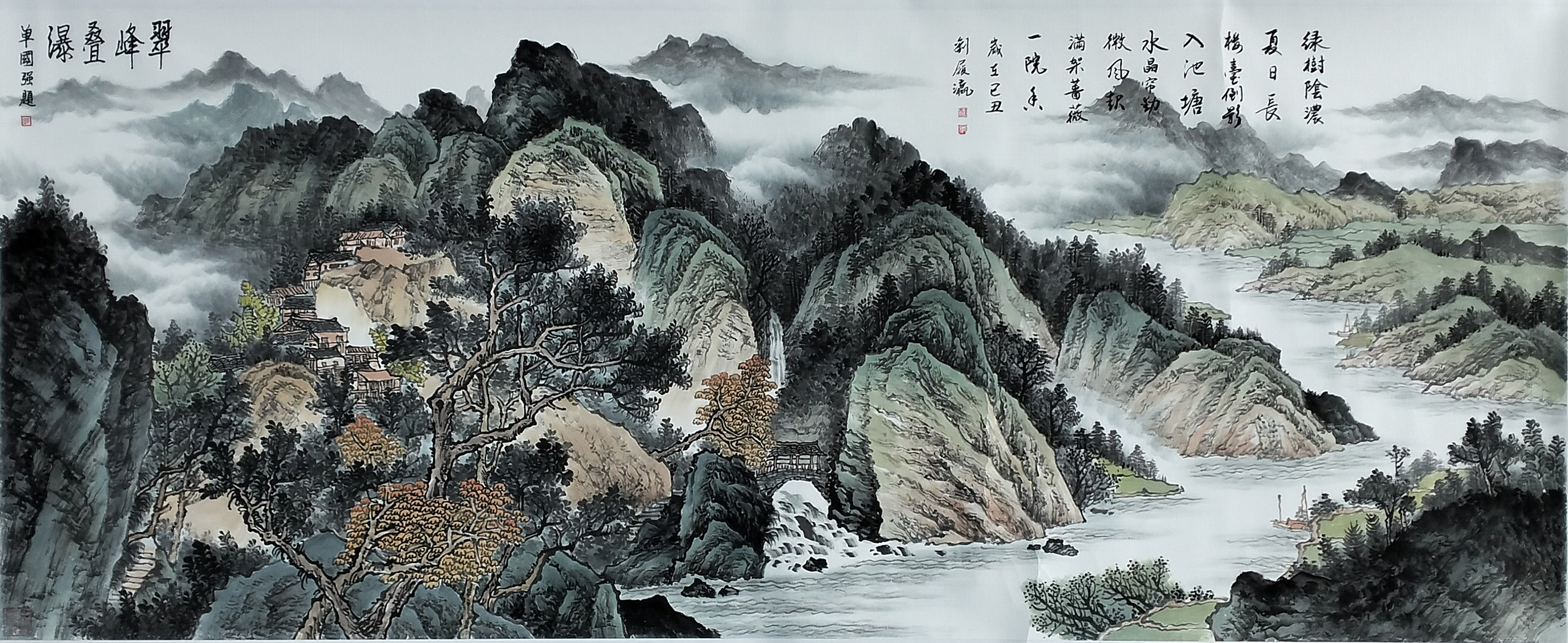 国画:翠峰叠瀑