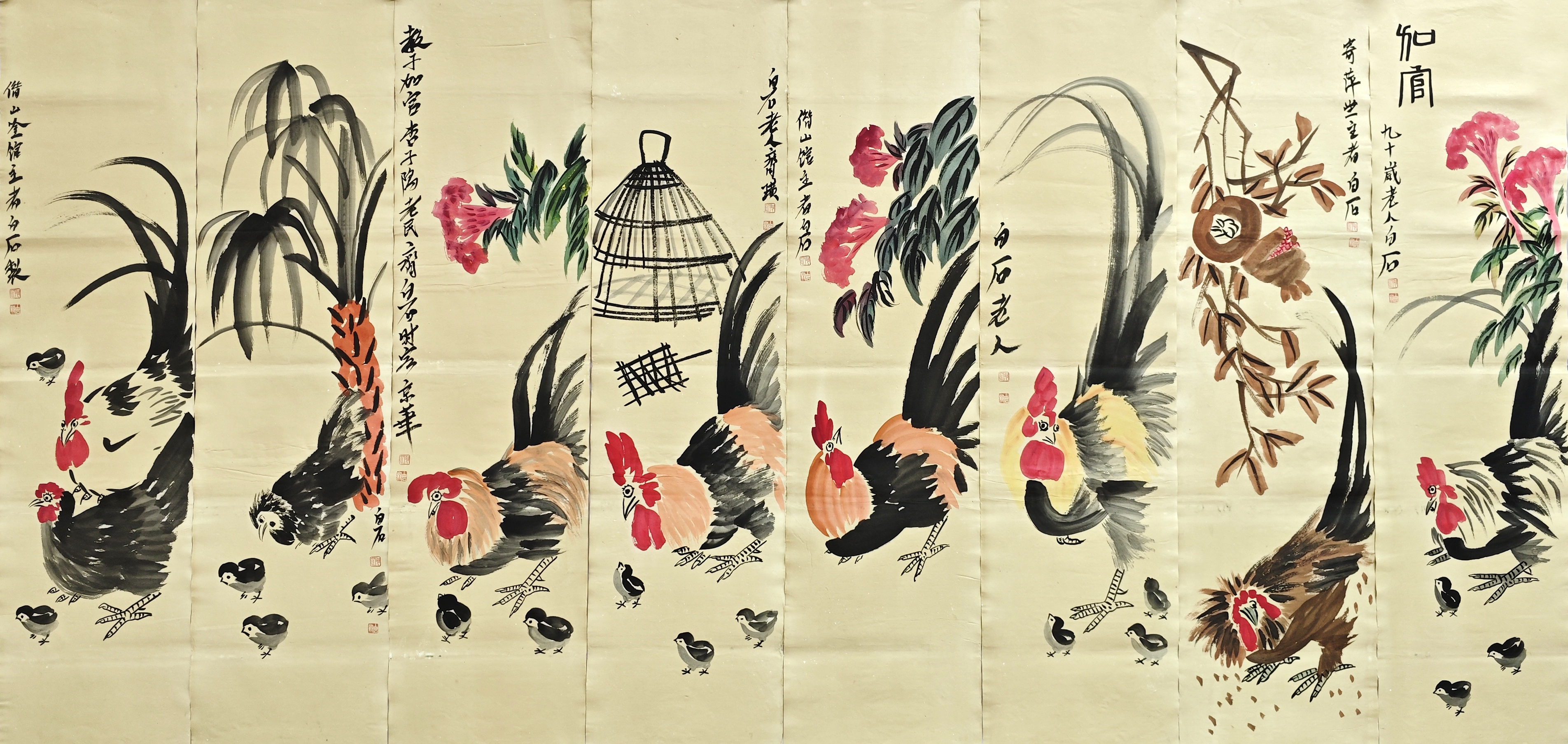 国画:花鸟八条屏