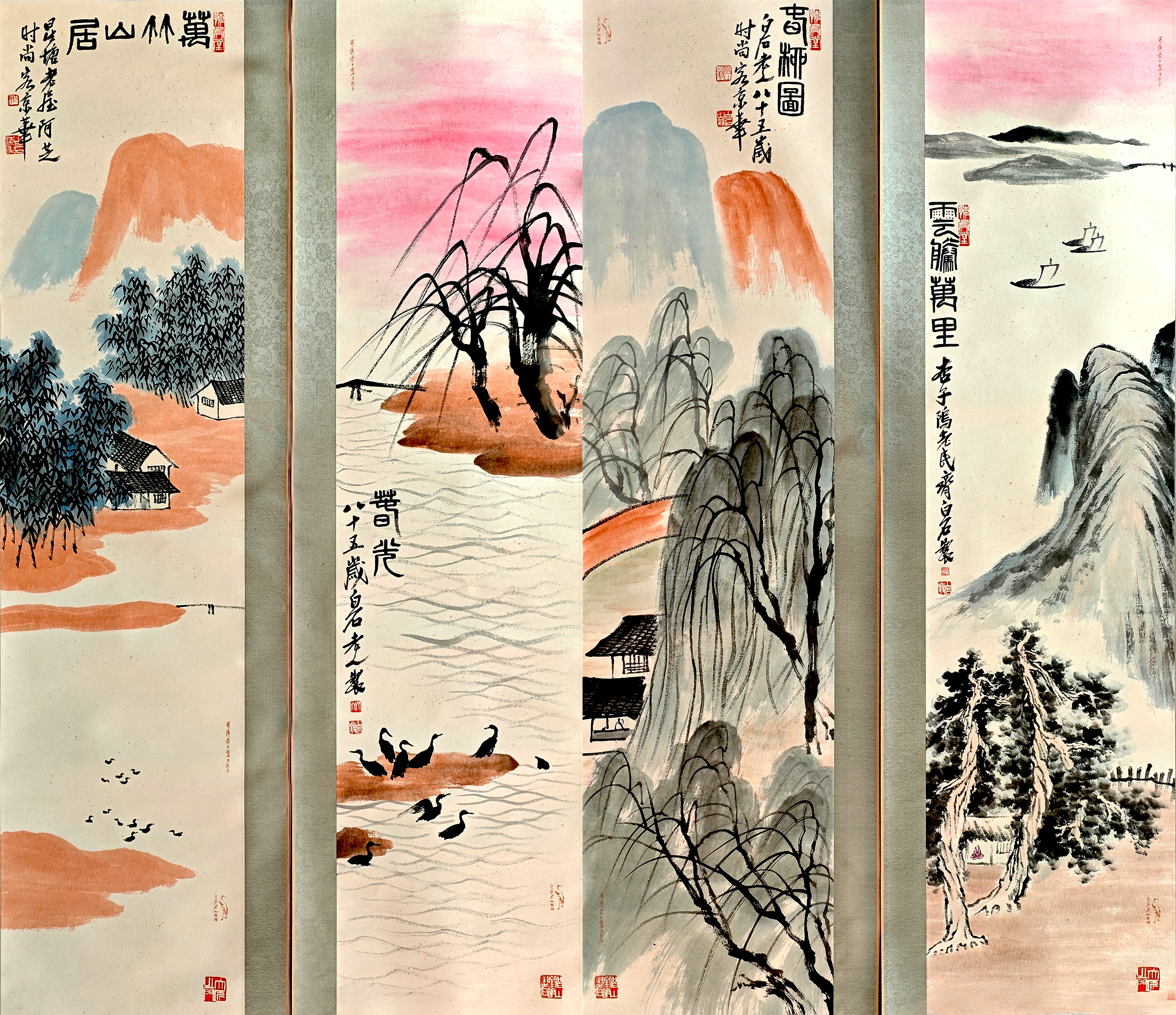 国画:山水四条屏