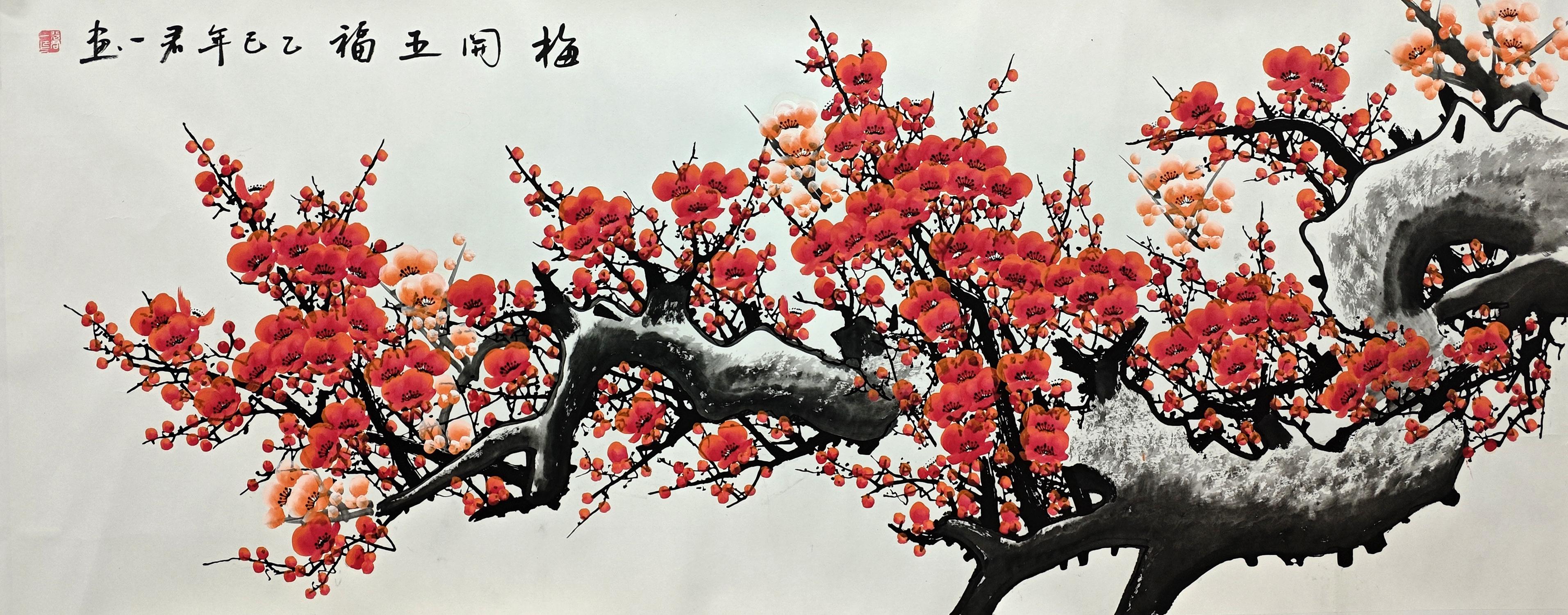 国画:梅开五福