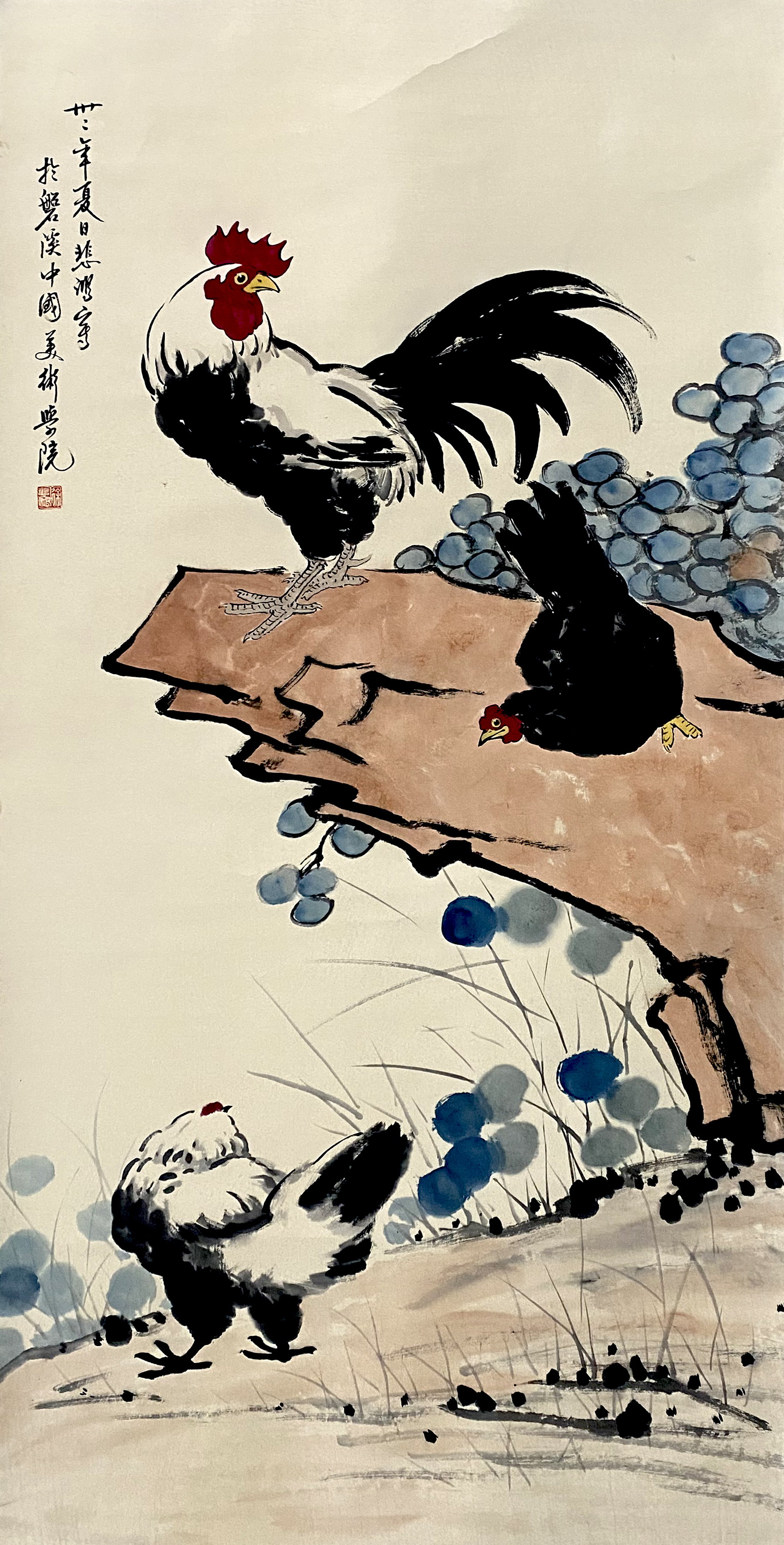 国画:群鸡嬉春图