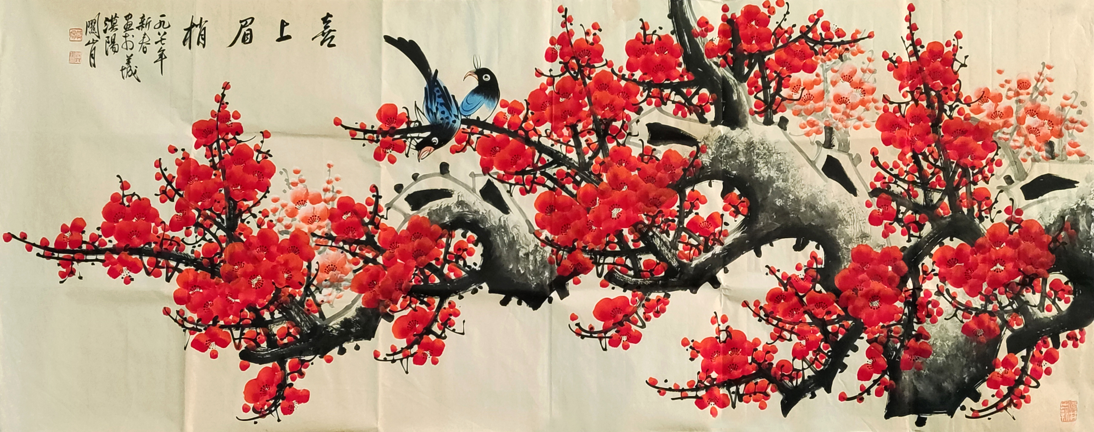 国画:喜上梅梢