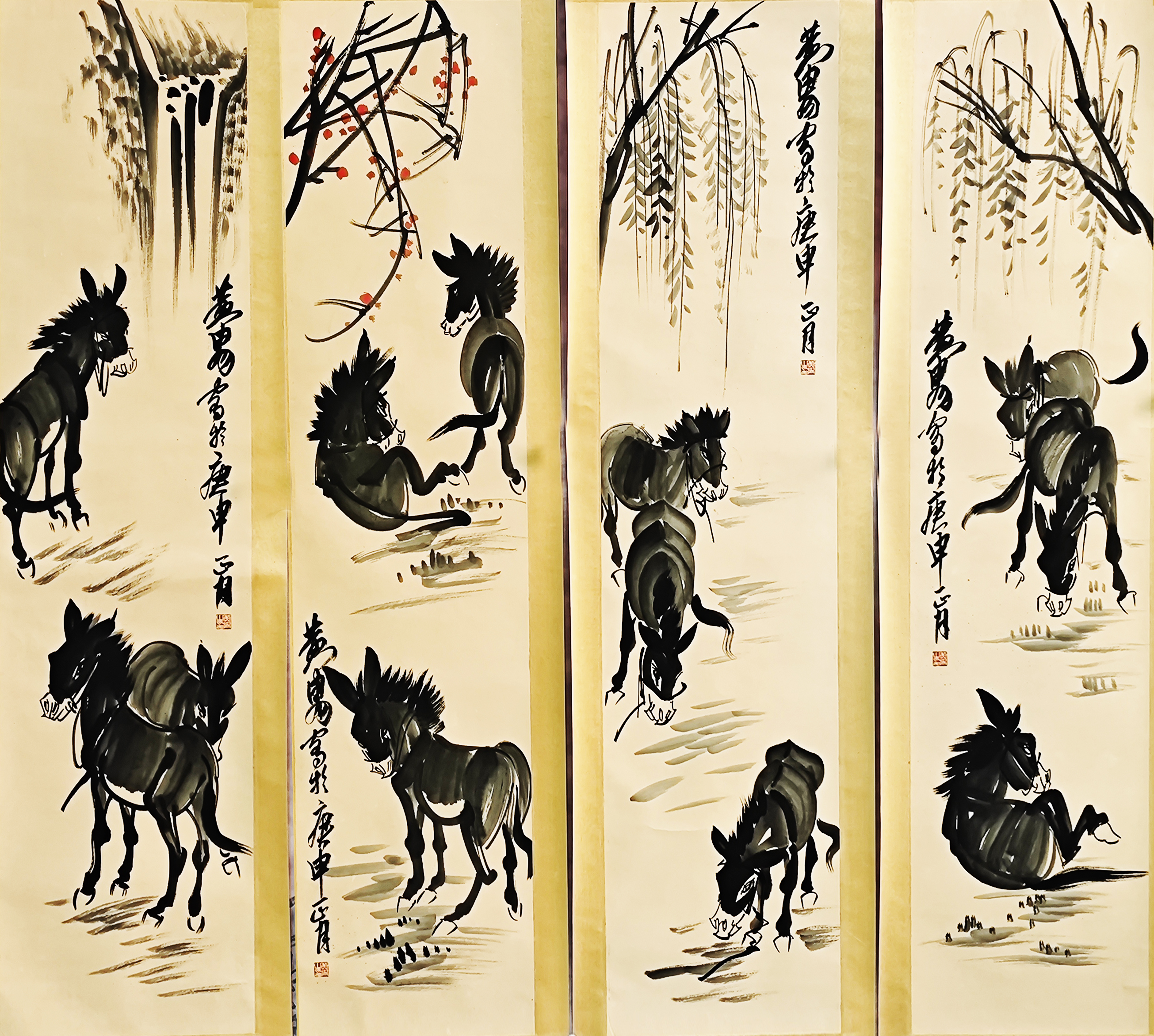 国画:驴四条屏