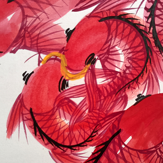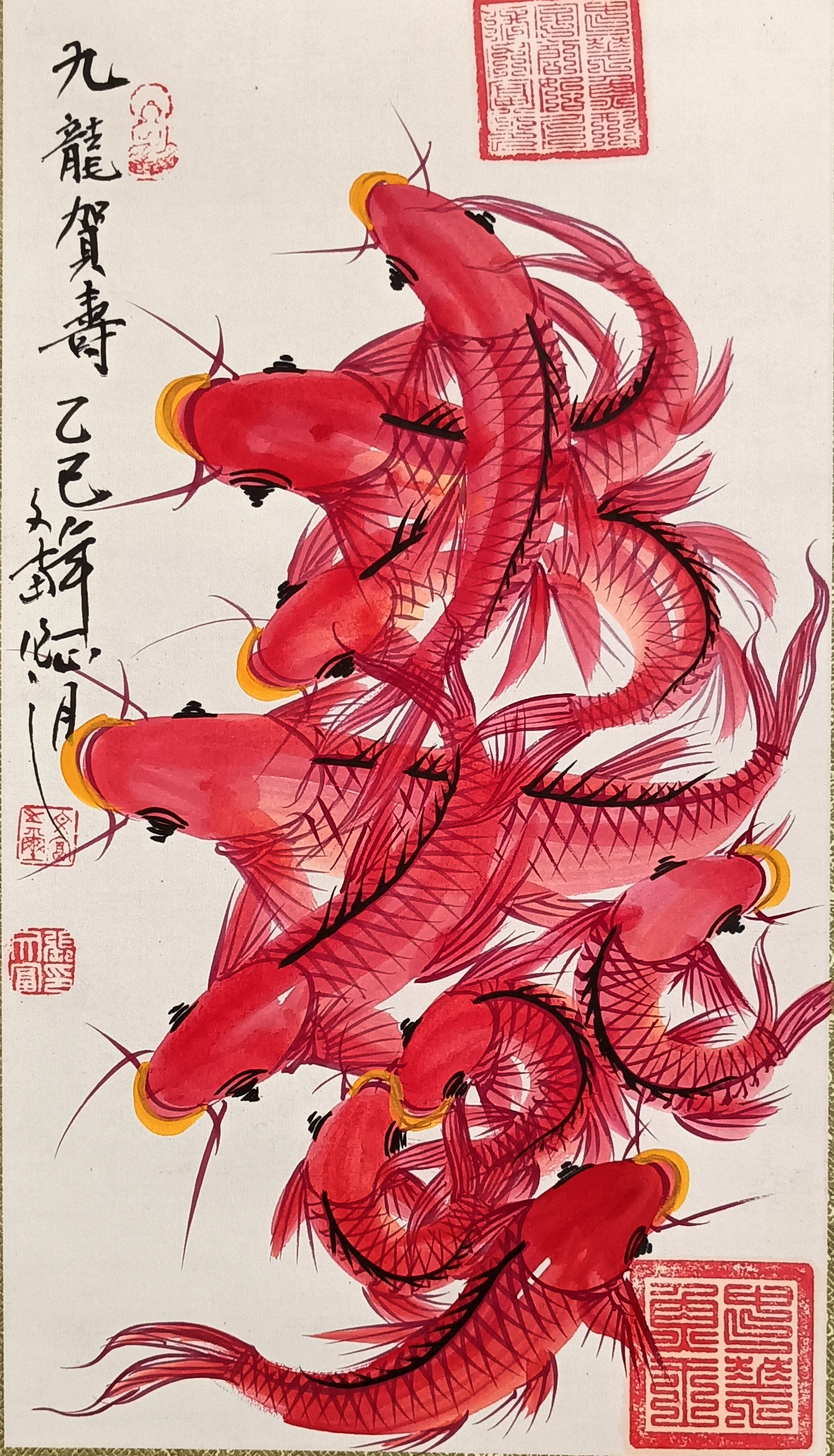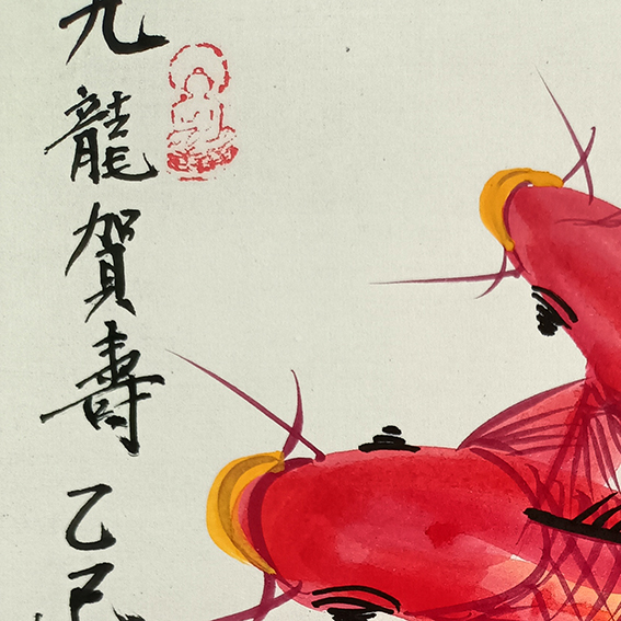 国画:九龙贺寿