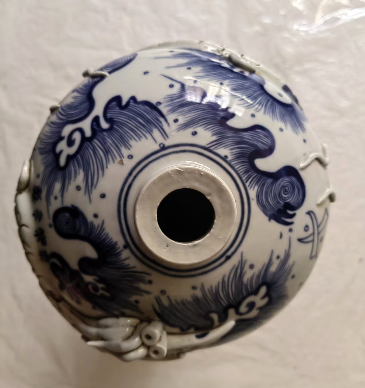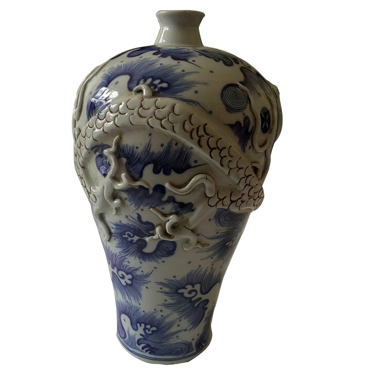 作品名称:明永乐制青花浮雕龙梅瓶
