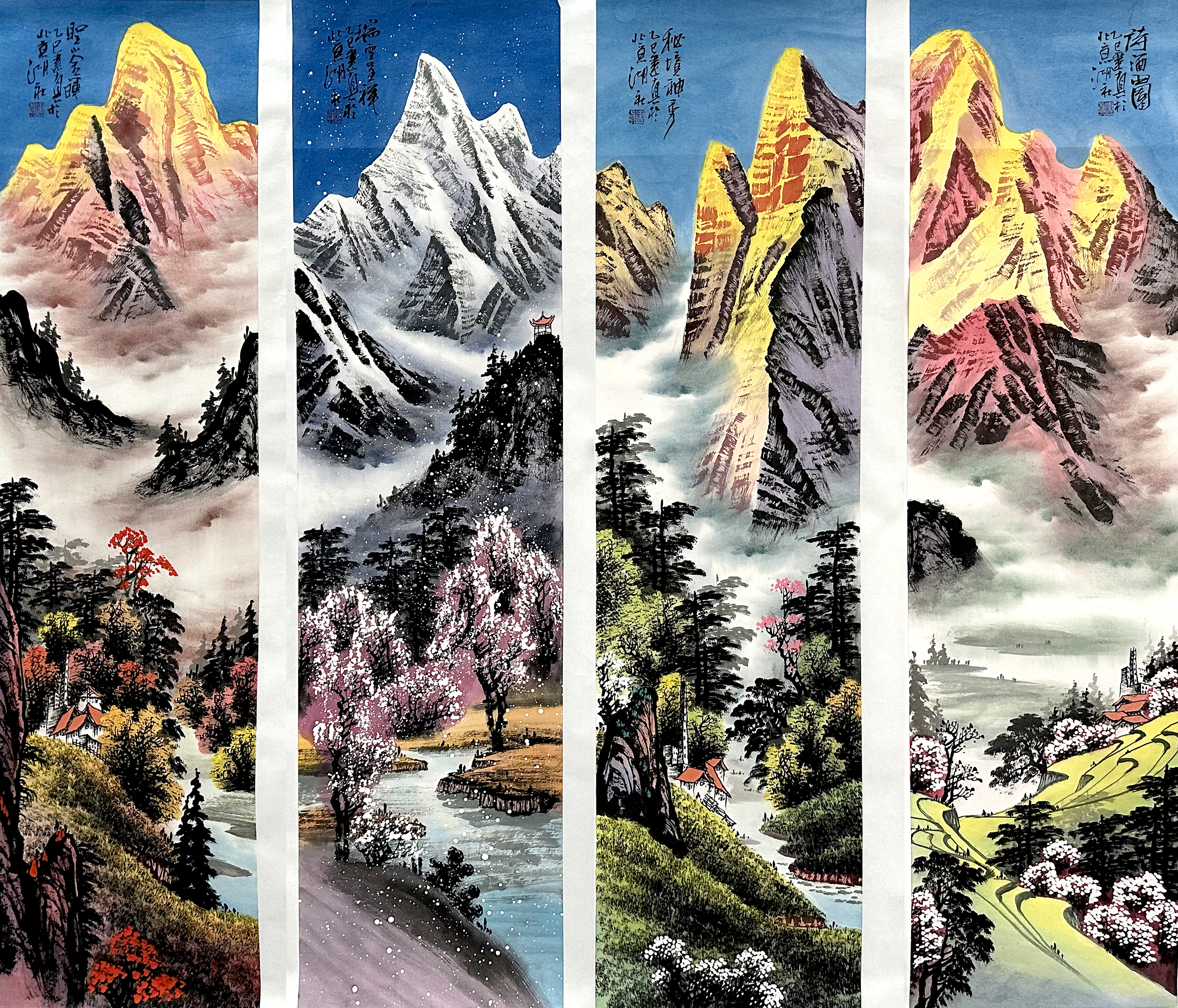 国画:瑞雪呈祥山水四条屏