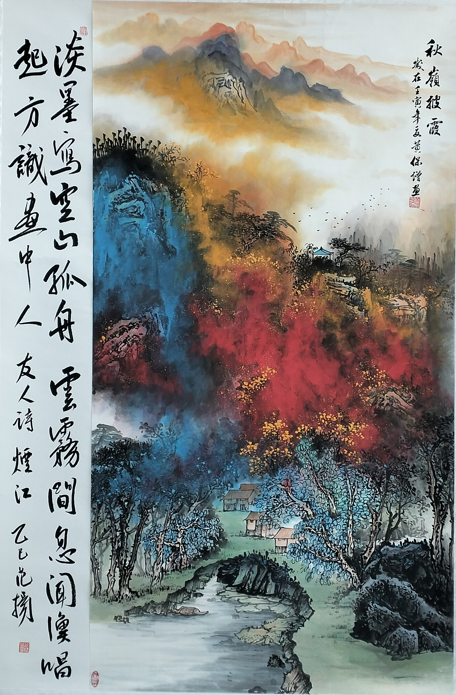 国画:秋岭披霞