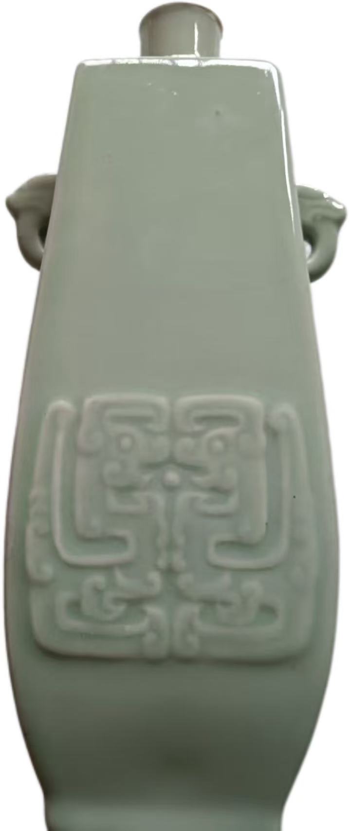 元代青釉双耳浮雕饕餮面纹瓶AA0016