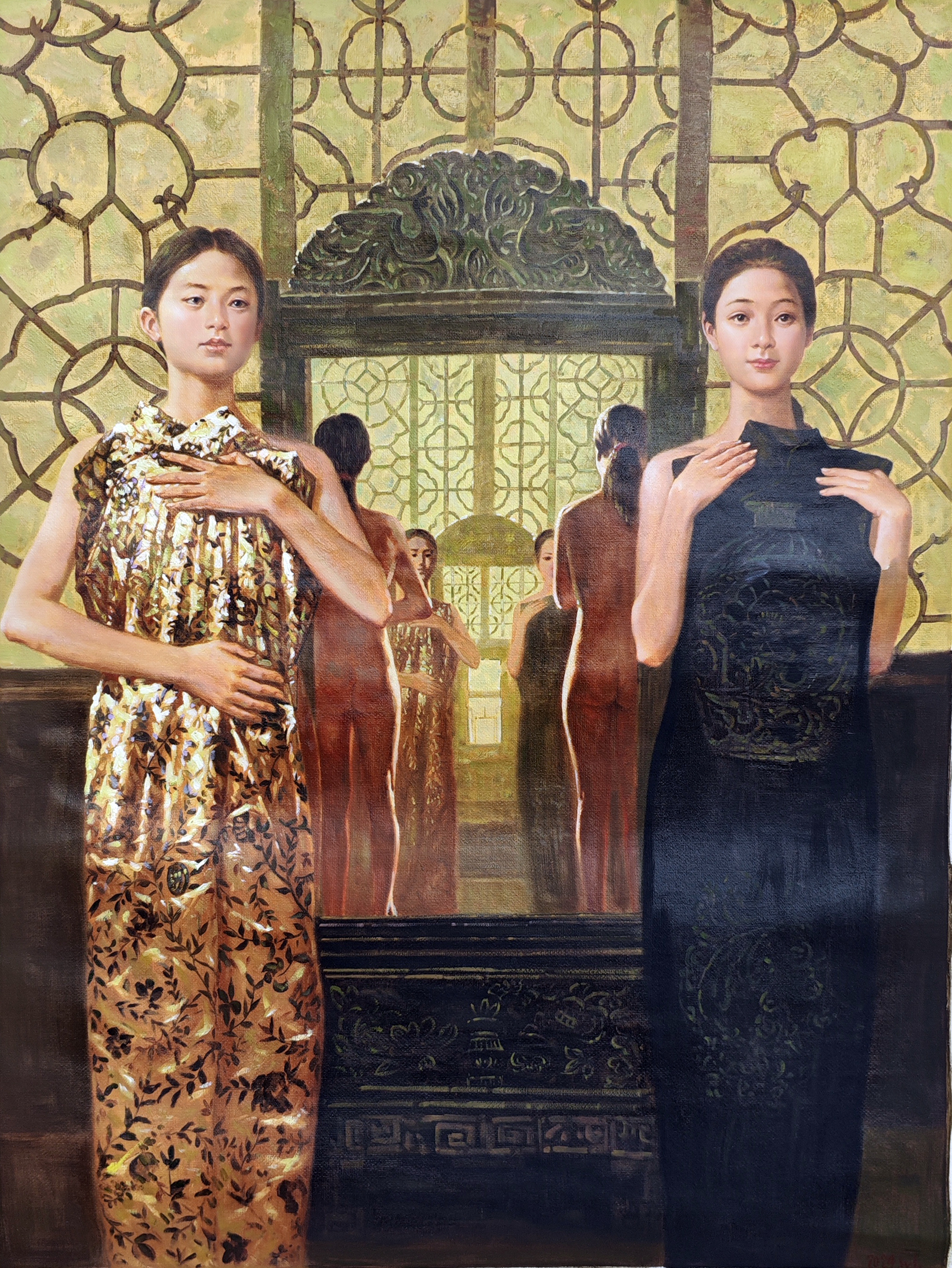 国画:油画镜中双影