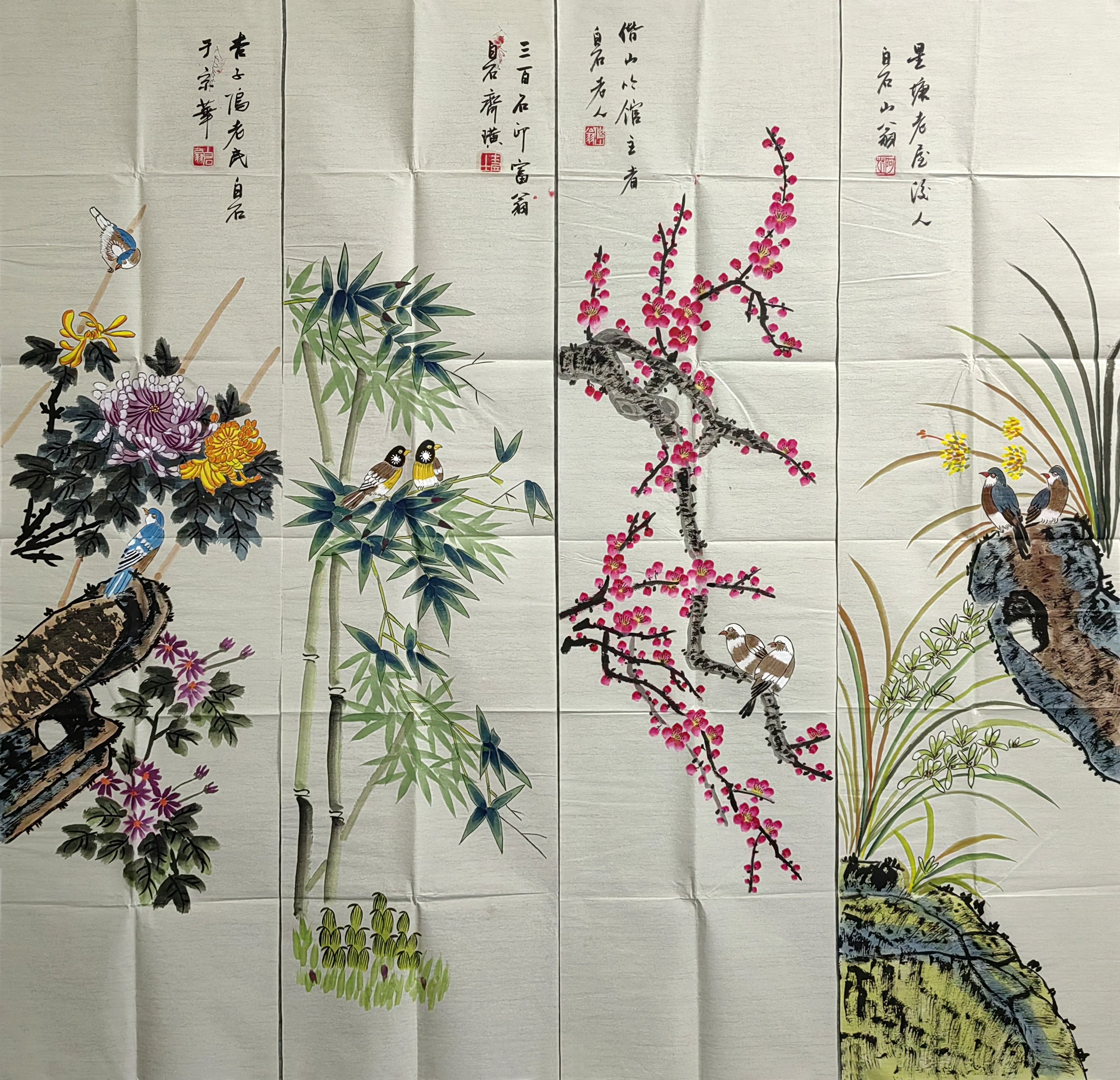 国画:花鸟四条屏