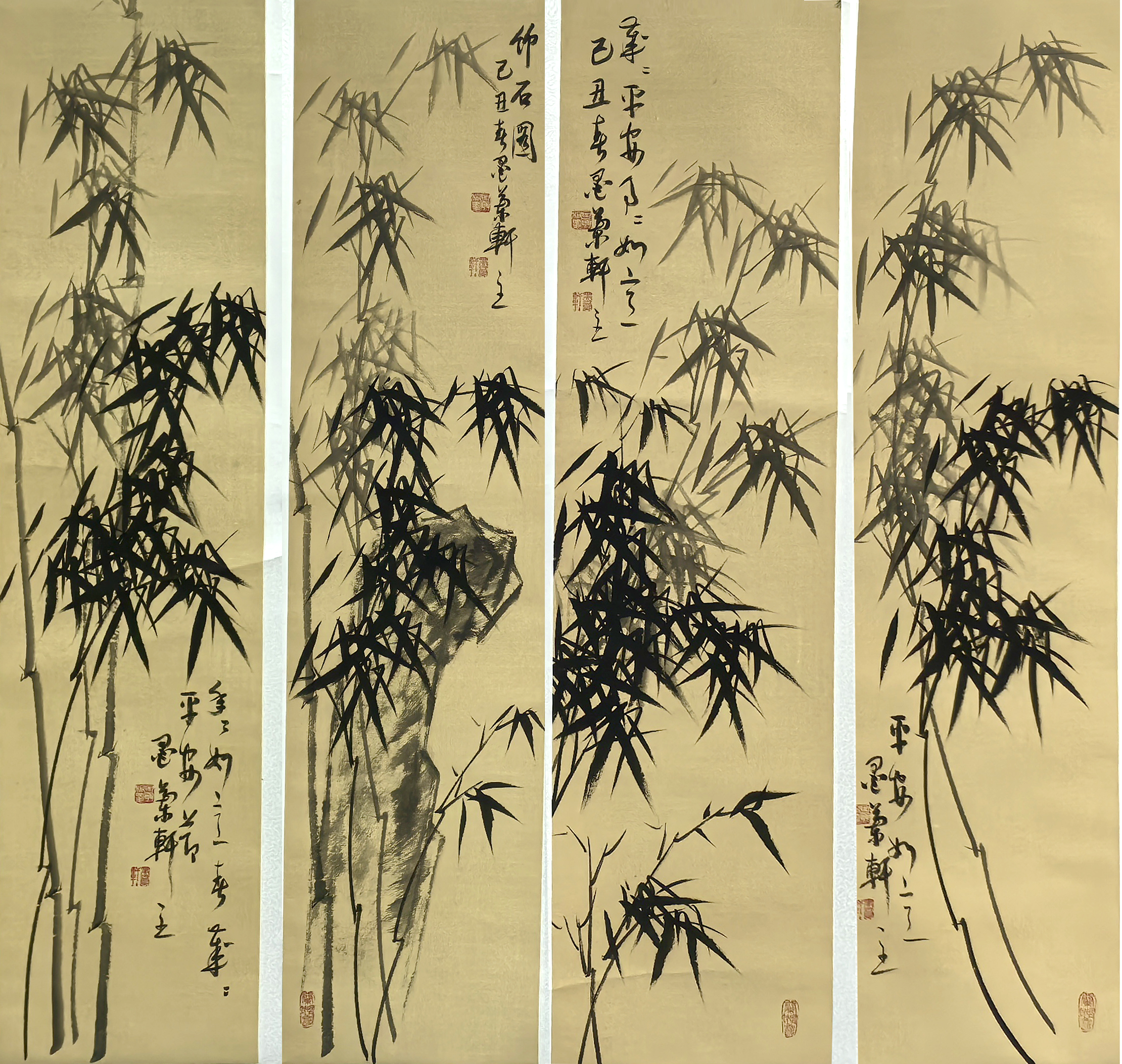 国画:平安竹四条屏